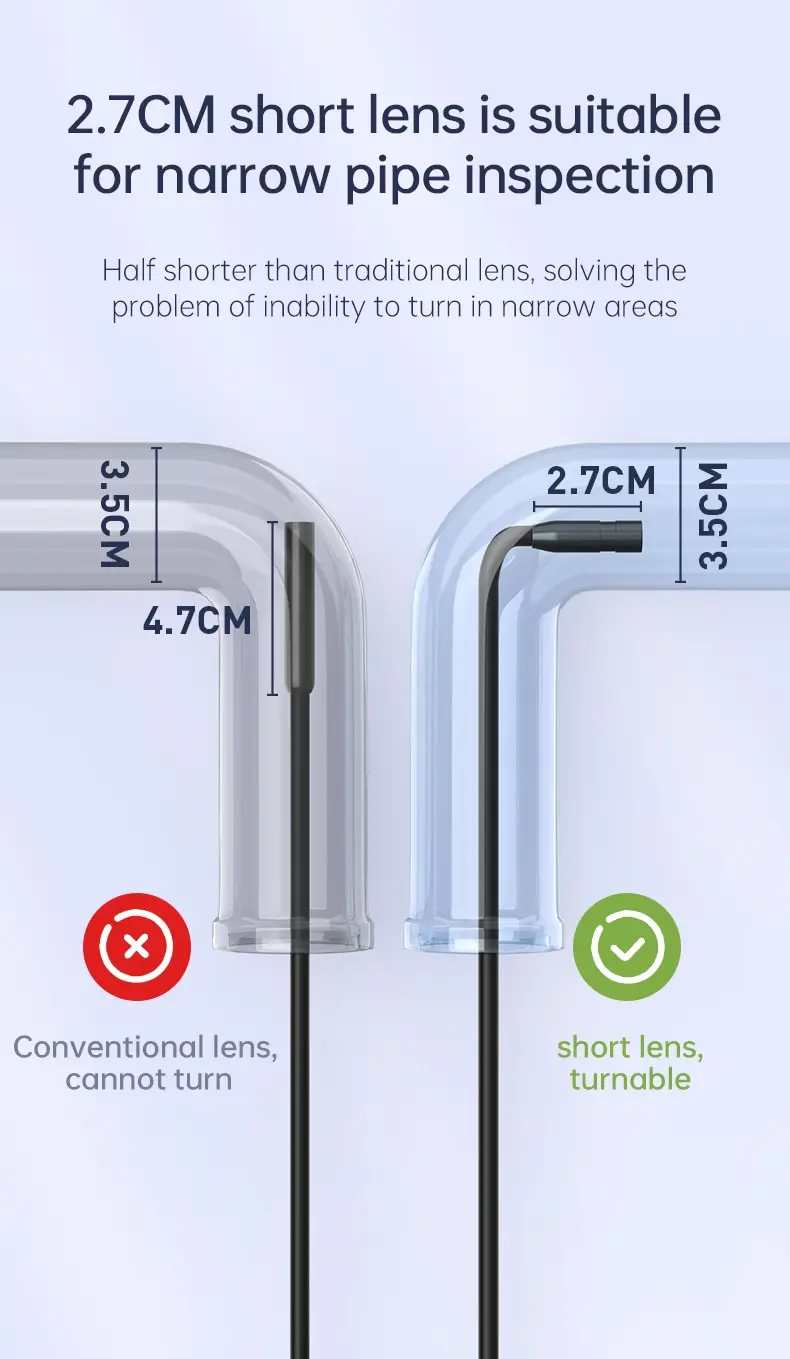 Lente corta de 2,7 cm es adecuada para inspección de tubería estrecha
