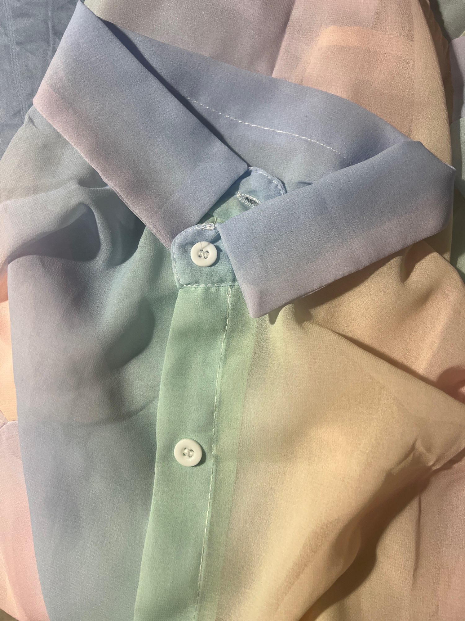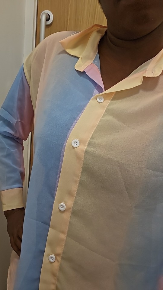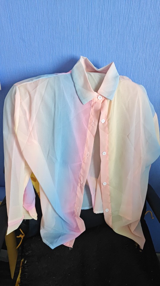 Esto es súper lindo, se ve exactamente como en la imagen. Las mangas no son muy largas, pero diré que son como mangas de 3/4 cuando las enrollas, pero es muy lindo poner algo encima cuando hace un poco de viento, ya que es una tela bastante transparente y liviana. DE NUEVO, súper lindo ☺️
