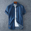 Camisas vaqueras azules para hombre, camisas vaqueras de manga corta, de alta calidad, de algodón, azul claro, talla grande, L-8XL