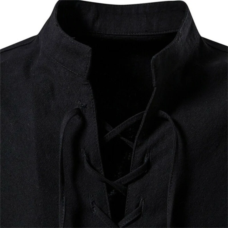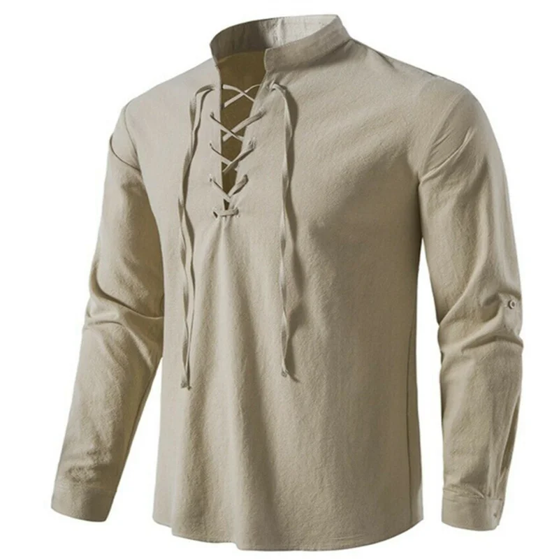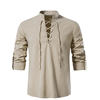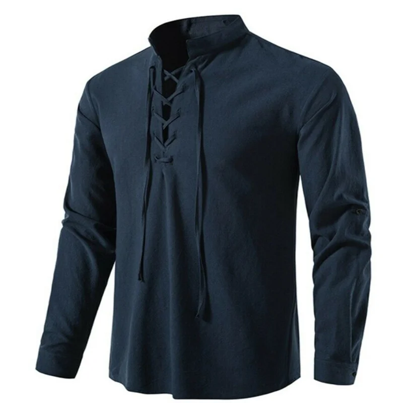 Camiseta con cuello en V para hombre, Top de manga larga a la moda, informal, transpirable, con cordones delanteros, novedad de 2022