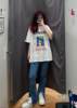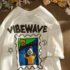 Camiseta de manga corta con estampado de tendencia callejera coreana para estudiantes masculinos y femeninos, top suelto de dibujos animados para amantes, tops de verano americanos