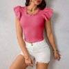Camiseta De Punto De gofres Para Mujer, Top Elegante De Manga Con Volantes,Camiseta De Empalme De Encaje Con Cuello Cuadrado