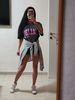 Impresionante camiseta por su costo, algodón 100%. El tejido es denso, de alta calidad, pero la sensación incluso en el calor es muy cómoda. La impresión es genial, no hay tipends para coser, es muy limpio. El tamaño S es 80-62-86 y la altura de la 1,55 se sienta como un gran tamaño. ¡Muy satisfecho!