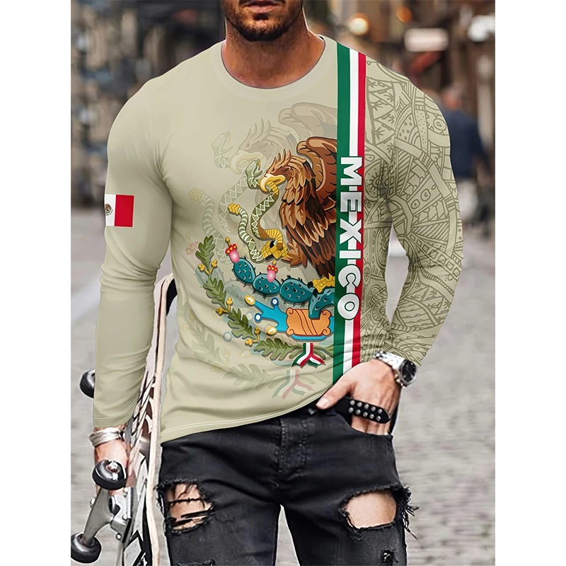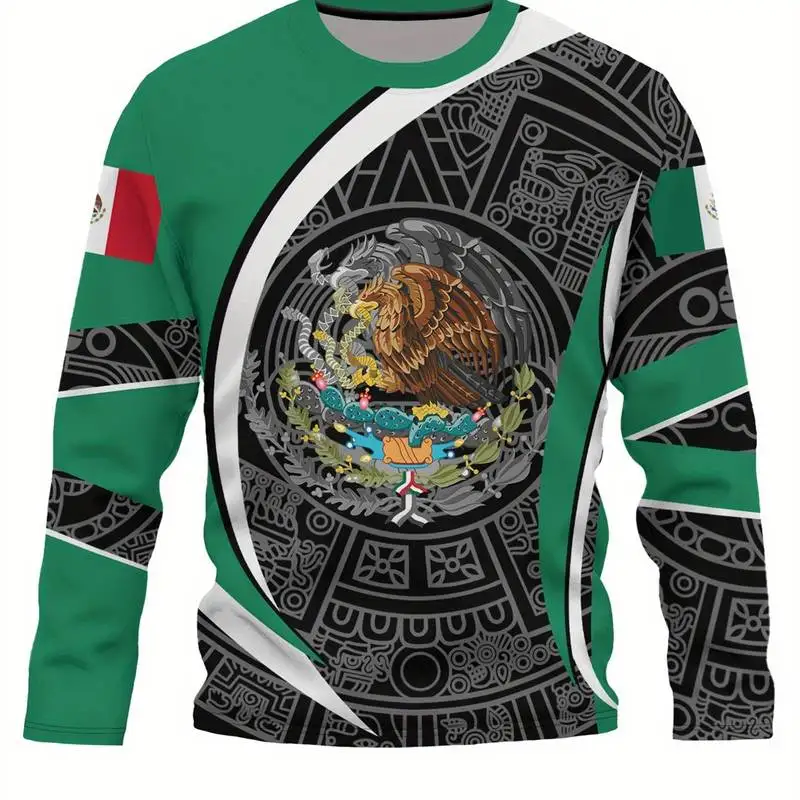 Camisetas con bandera mexicana a la moda, camiseta de manga larga con estampado 3D de México para hombres y mujeres, ropa de calle de gran tamaño, camisetas Harajuku para niños, ropa superior