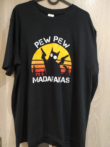 La calidad de las camisetas es buena. La impresión en la camiseta se realiza mediante aplicación térmica (impresión térmica) durante cuánto tiempo durará. Es una situación de los menos incomprensible con el tamaño. Ordenó 5 camisetas con el tamaño 2XL. Cuando inmediatamente reveló que era visualmente claro que las dos camisetas son muchas veces más grandes que las otras. Cuando miré la etiqueta, resultó que había una etiqueta en la parte superior con el tamaño que pedí y debajo de ella había otra etiqueta con un tamaño de camiseta de 3XL real. Tengo que darle a alguien. Así que tenga en cuenta que con el tamaño de algunos malentendidos. Sólo doy 5 estrellas debido a la calidad de la camiseta, el precio es realmente bueno