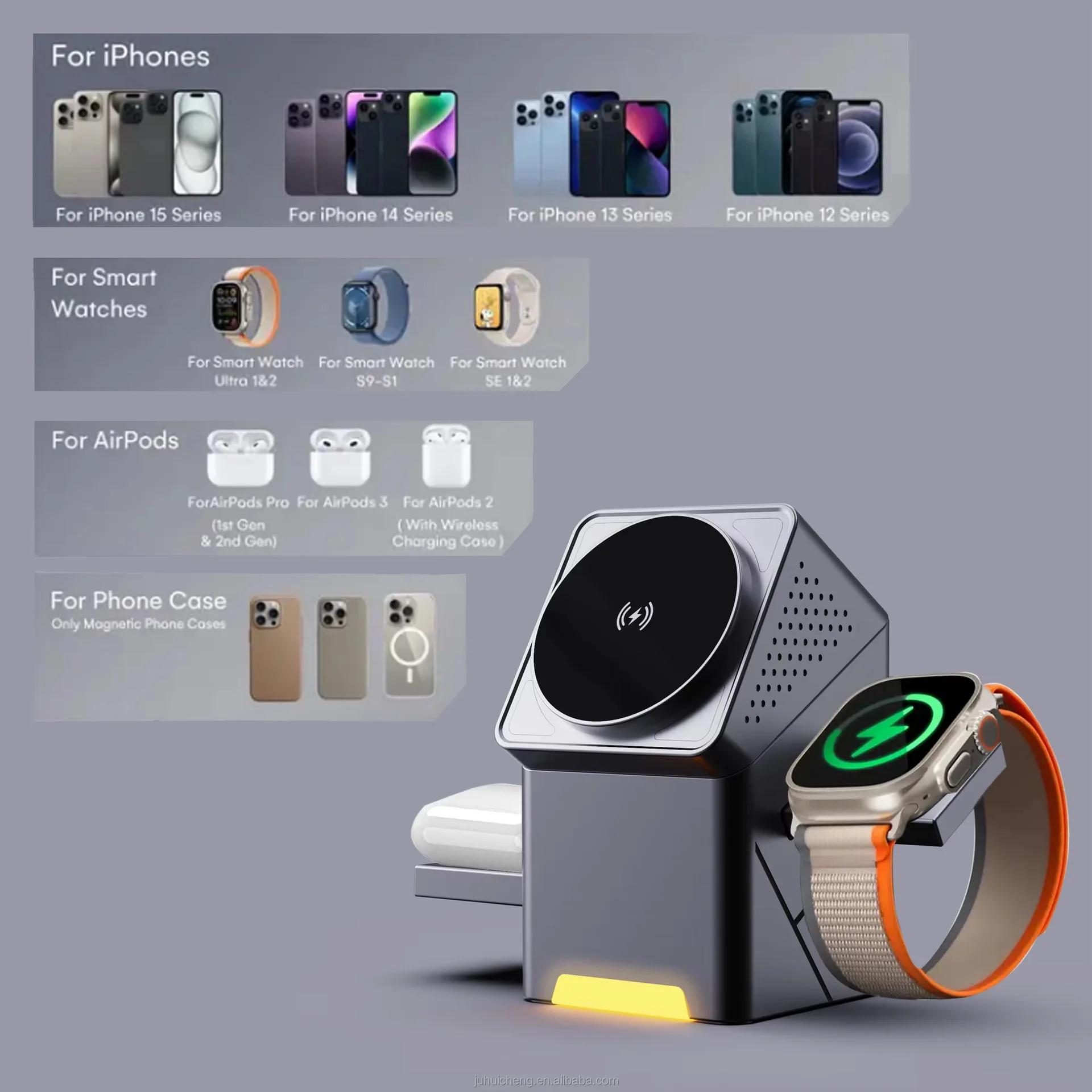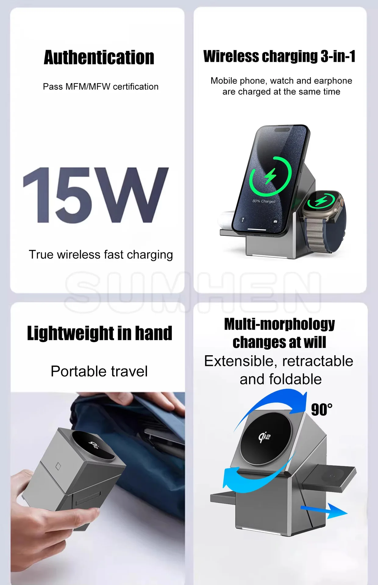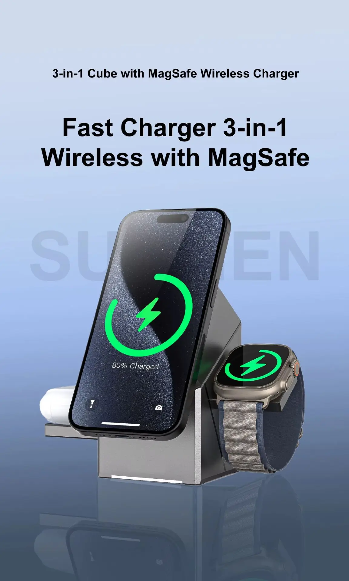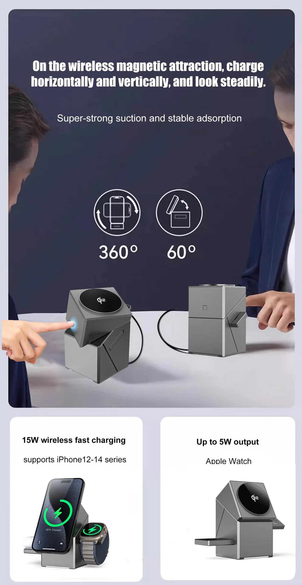 Cargador inalámbrico cubo 3 en 1, rotación automática, estación de carga inalámbrica magnética de 15W para IPhone 16 15 14 13 12 iWatch Airpods