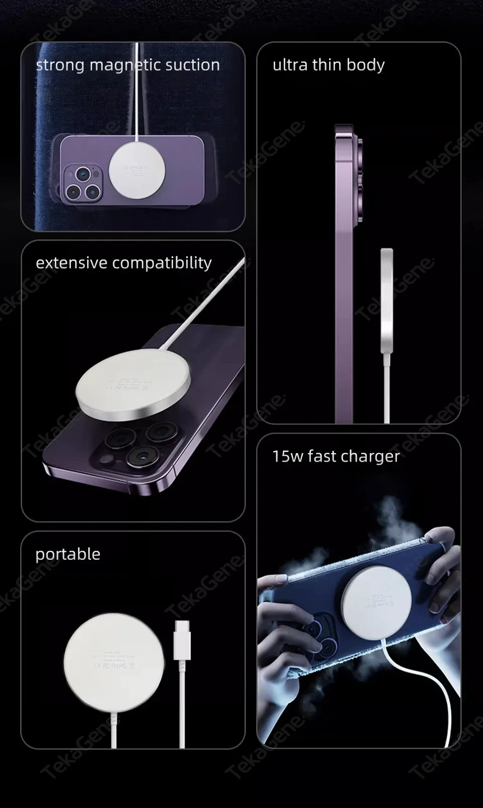 Cargador inalámbrico magnético de 15W para iPhone 16, 15, 14, 13, 12 Pro Max, Samsung, Huawei, carga rápida, accesorios para cargador de teléfono inalámbrico