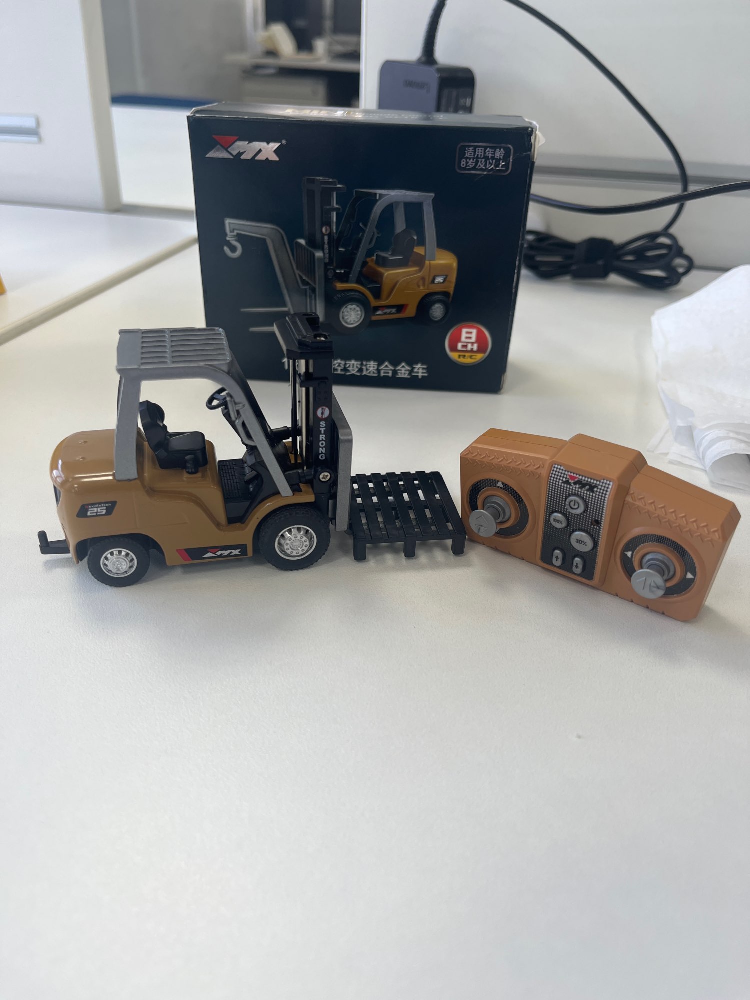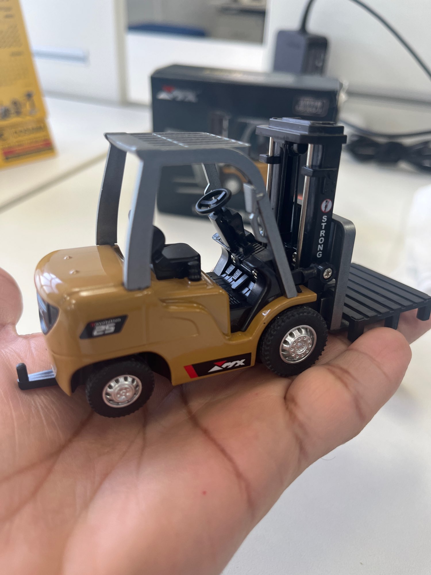 Carretilla elevadora de mesa RC de 2,4G, vehículo de ingeniería, Mini carretilla elevadora de aleación con Control remoto, juguetes de escritorio, modelo regalo para niños, 1/64