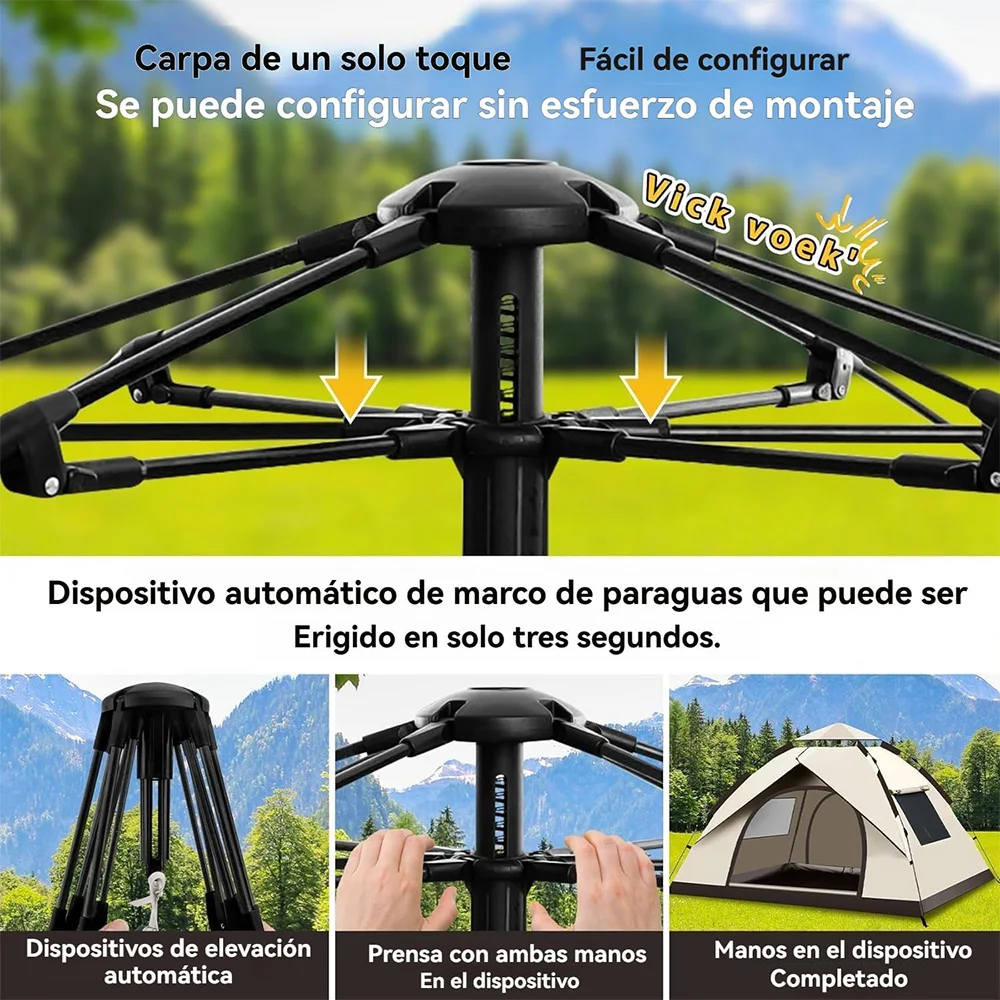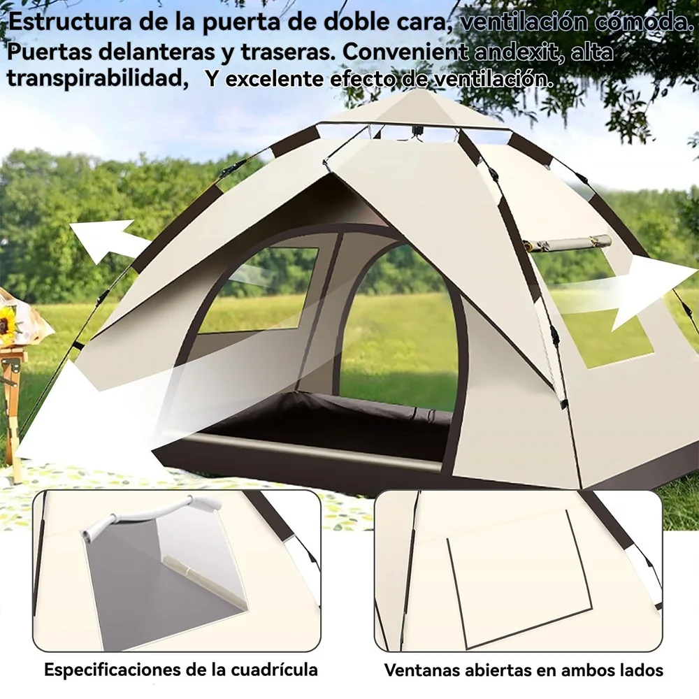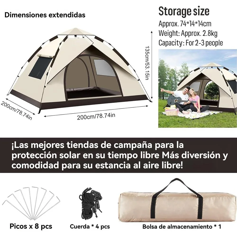 【Optimizada ventilación】:La carpa plegable para 2-3 personas tiene una pared y un techo de malla que están bien ventilados. La tienda de campaña de cabina para tres personas es un lugar cómodo para quedarse. 2 puertas y 2 ventanas para garantizar la circulación del aire y evitar que el aire caliente se acumule en la tienda. La doble cremallera con costuras hace que la entrada sea cómoda y el cierre suave. La puerta con cremallera se puede apoyar para protegerse del sol