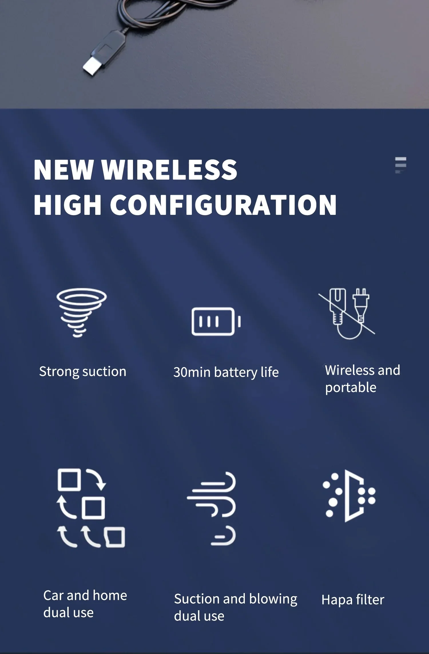 [Funciones del producto]: principalmente limpieza de automóviles, aspiración, soplado de polvo, etc.