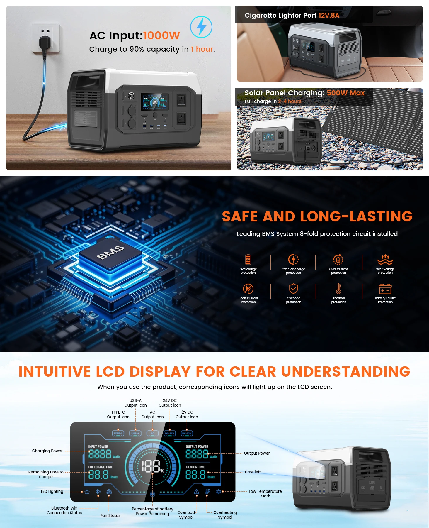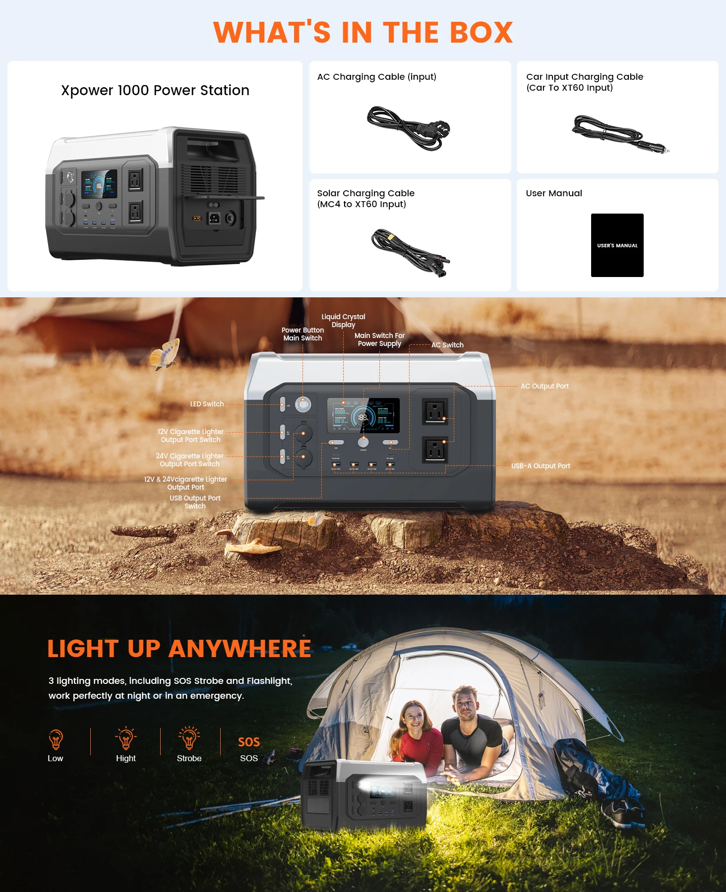 Especificaciones de la central eléctrica portátil XP1000 1024Wh 1600W como se muestra a continuación