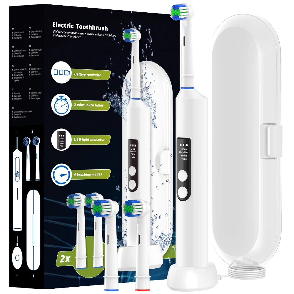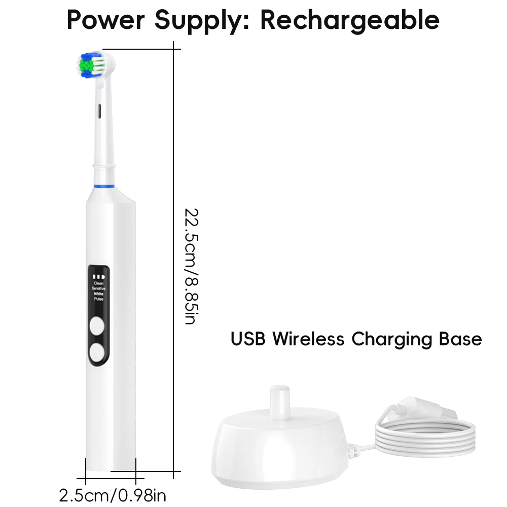 Cepillo de dientes eléctrico giratorio inteligente con carga inalámbrica, 4 modos, recargable, Compatible con cabezales de cepillo Oral B