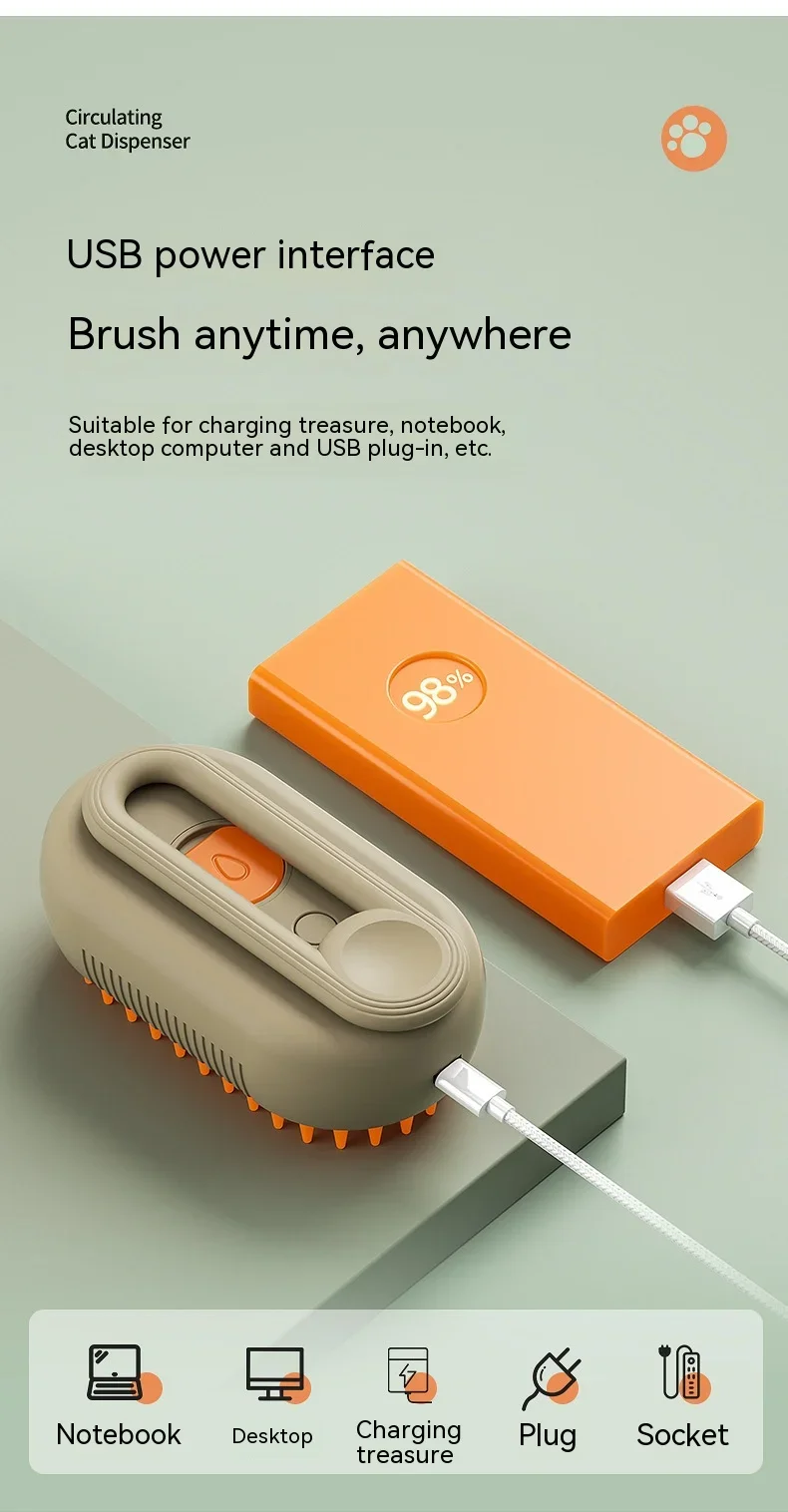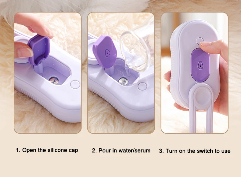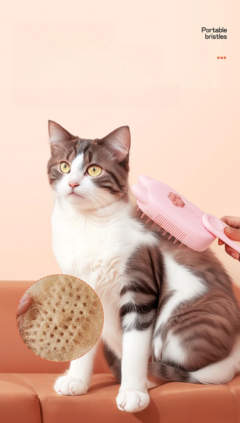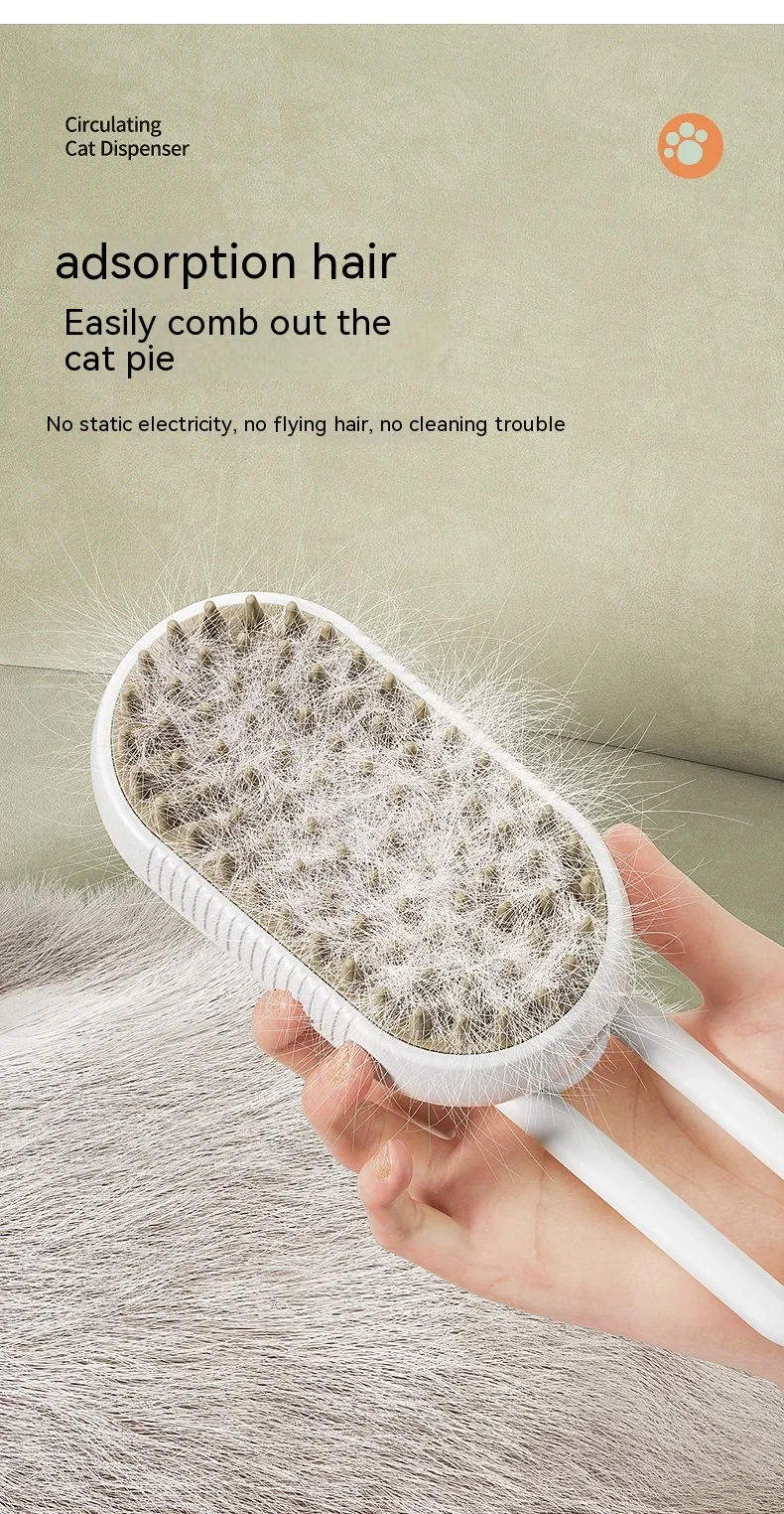 Cepillo para mascotas de vapor con función de pulverización única】El cepillo para el pelo Steam Cat está diseñado con una función de pulverización única, que puede aflojar y eliminar eficazmente el polvo y la suciedad acumulados del pelo de gato;El spray no sólo es seguro, sino que también hidrata ligeramente el pelo de la mascota, ayudando a suavizarlo mejor y resolviendo perfectamente el problema del cuidado difícil debido a la electricidad estática.