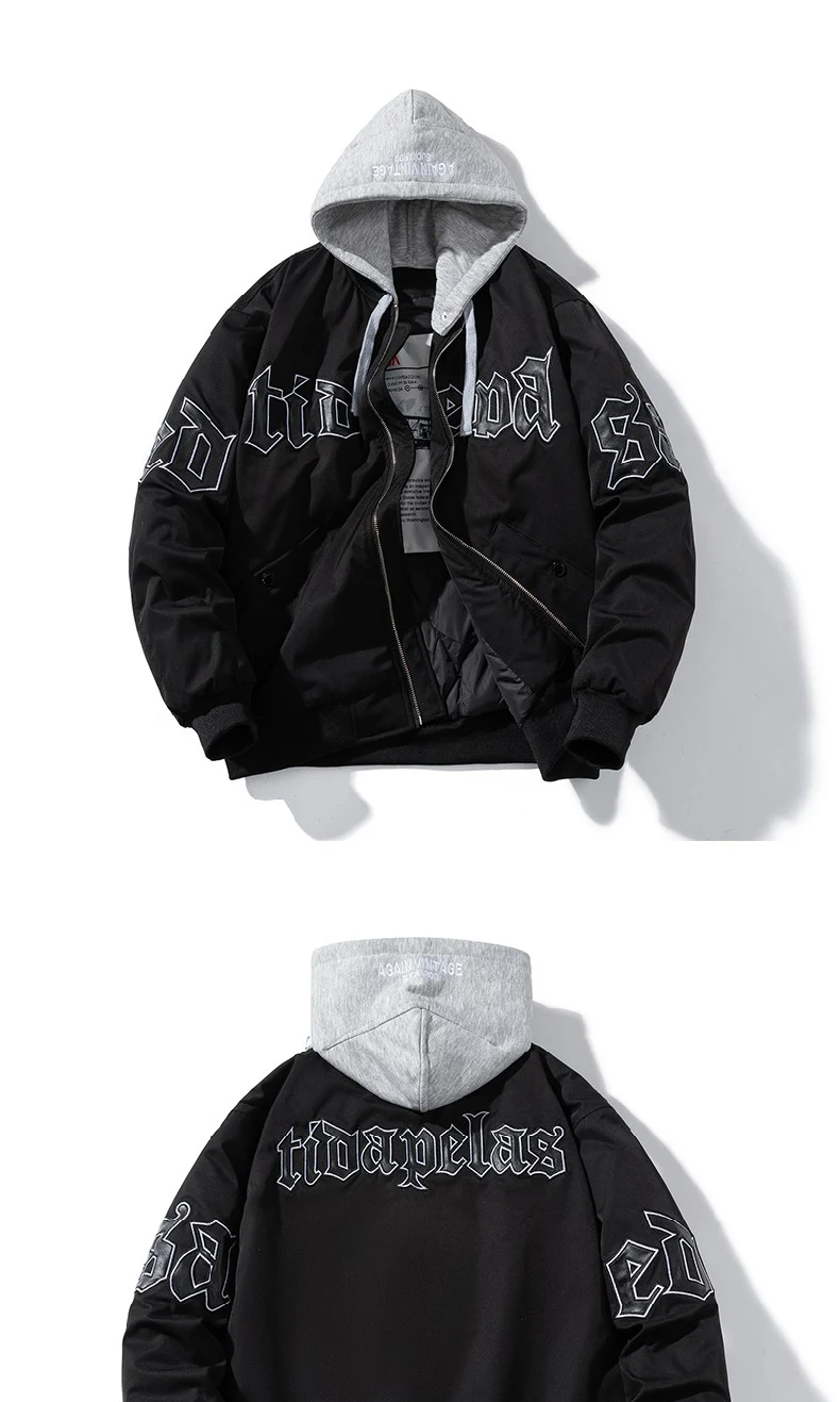 Chaqueta de béisbol con letras para hombre y mujer, Parkas con capucha, abrigo americano de Hip Hop, chaqueta Bomber Vintage, moda de invierno, pareja, High Street