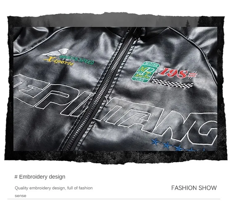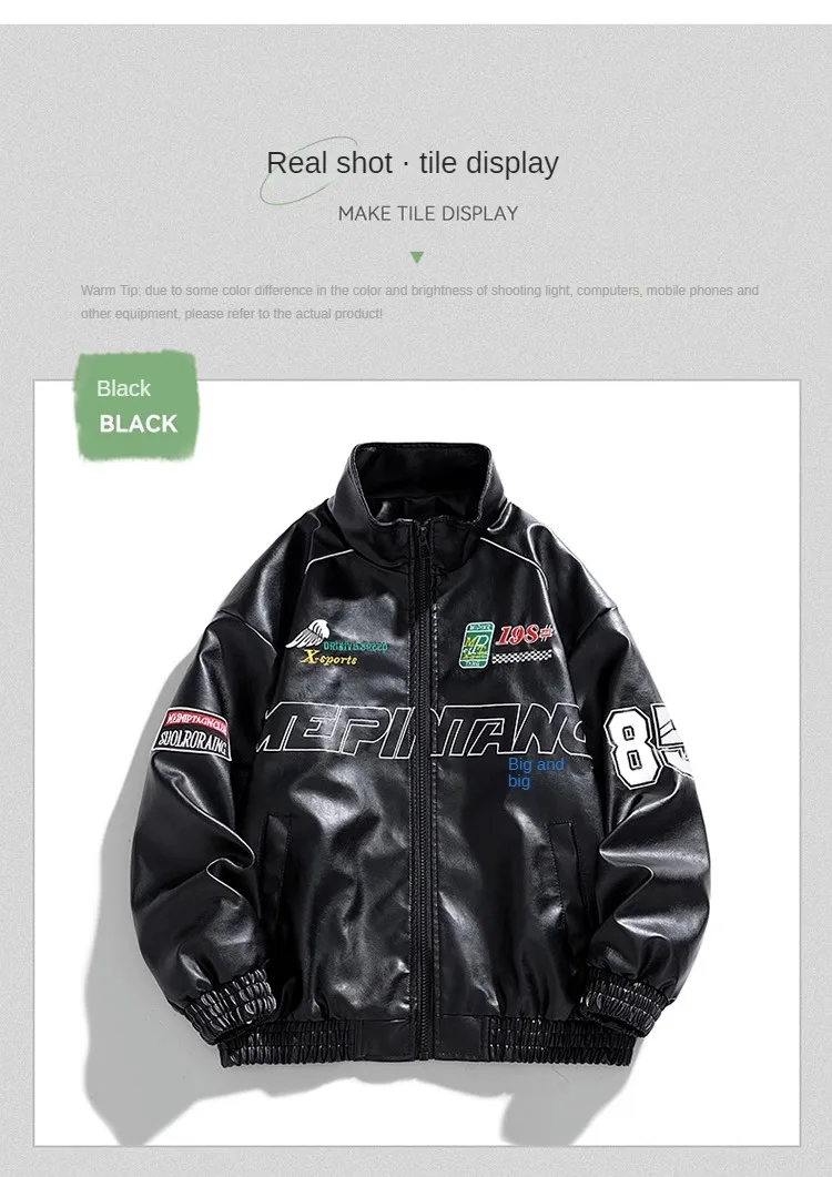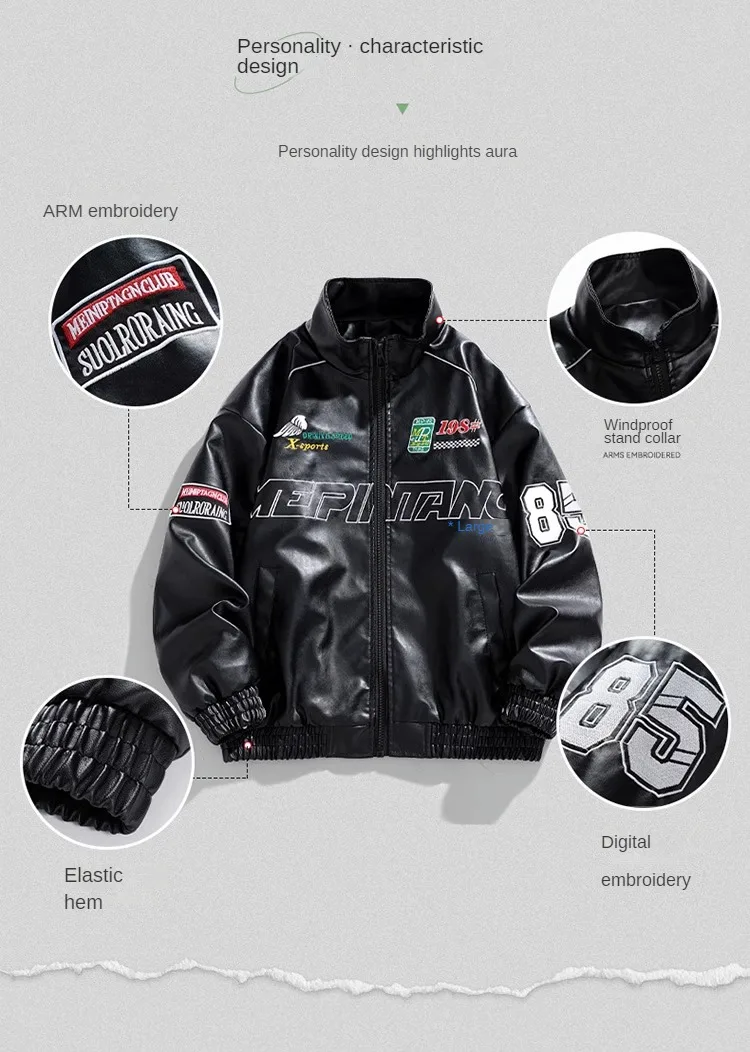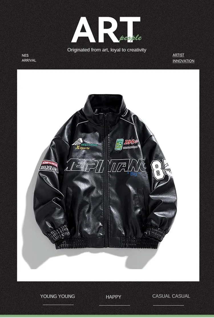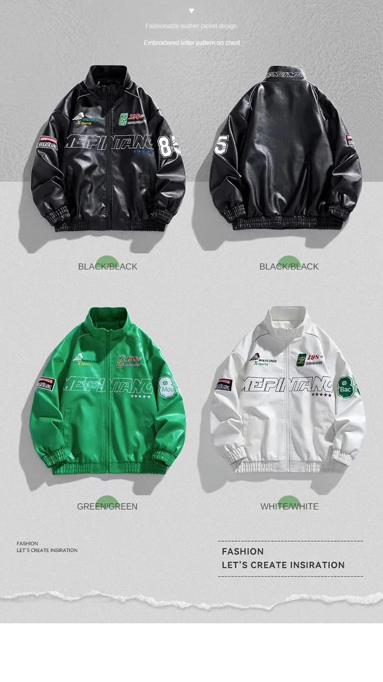 Chaqueta de cuero Pu con bordado de letras para hombre, chaqueta de motocicleta Retro, cortavientos de Hip Hop, abrigo de motorista, moda urbana, negro, blanco, verde