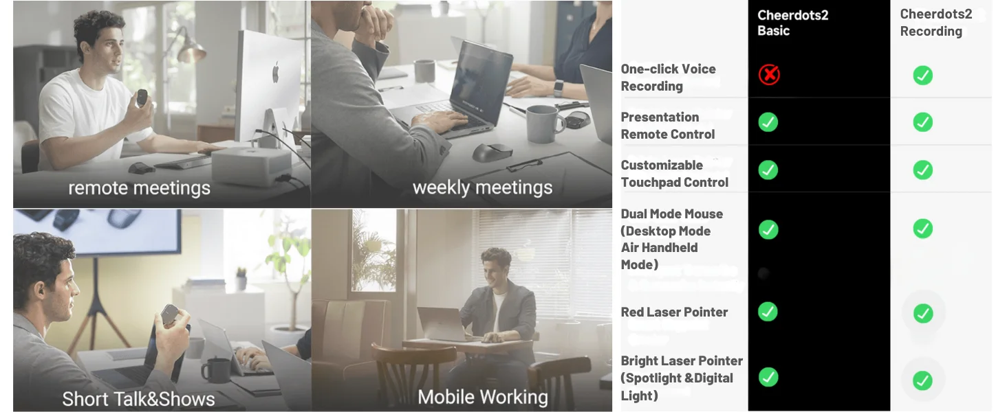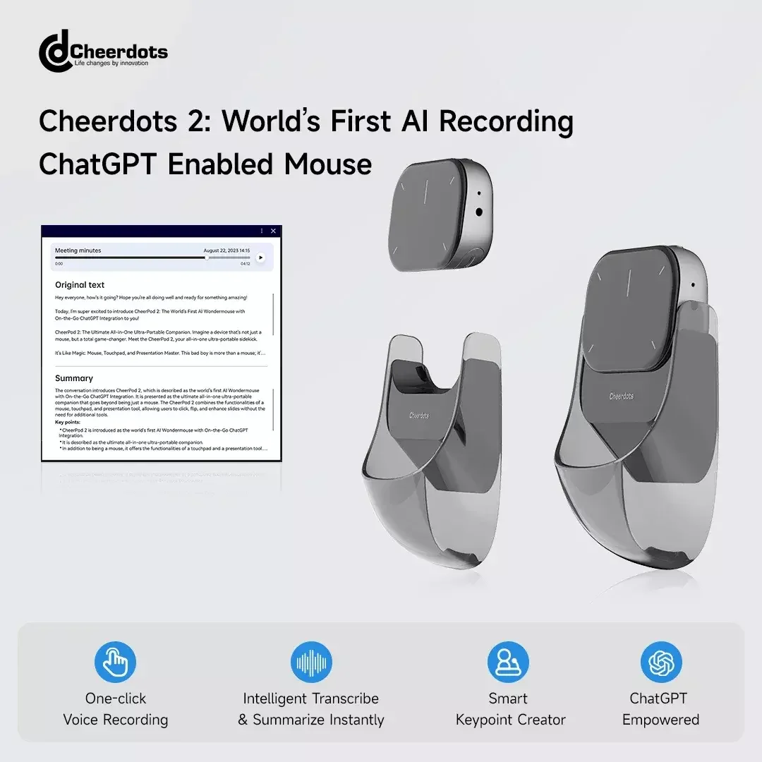 El ratón Cheerdots 2 no es sólo una herramienta para apuntar y hacer clic; Es un dispositivo versátil que se integra perfectamente con su flujo de trabajo.Ya sea que esté editando fotografías, navegando por menús complejos o participando en juegos inmersivos, el panel táctil inalámbrico brinda una experiencia fluida y receptiva.La inclusión de grabación AI e integración ChatGPT permite la personalización y la automatización, agilizando tareas y elevando su eficiencia.Este ratón está diseñado para adaptarse a tus necesidades, lo que lo convierte en un activo indispensable tanto para uso profesional como personal.