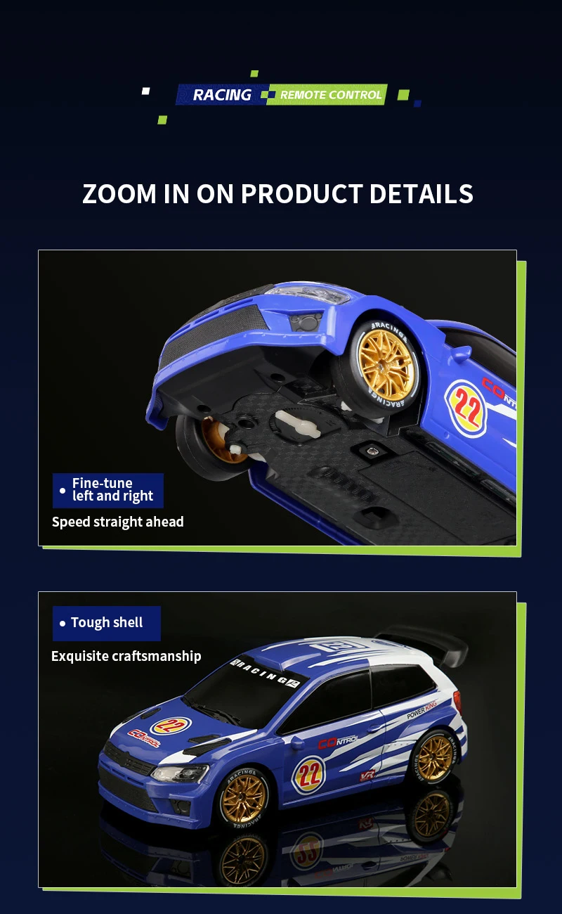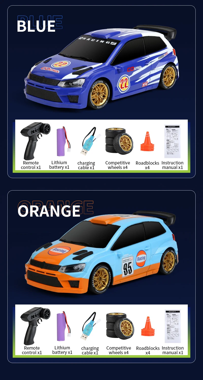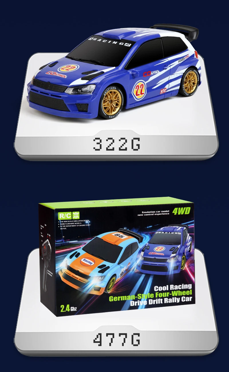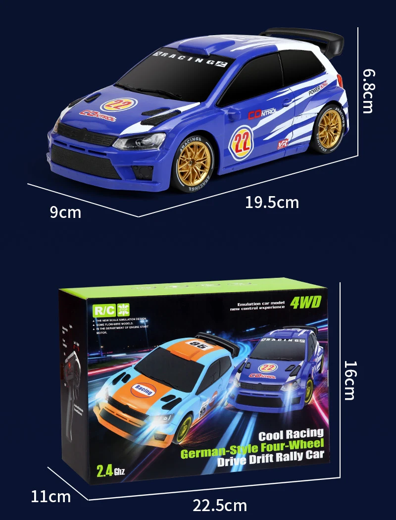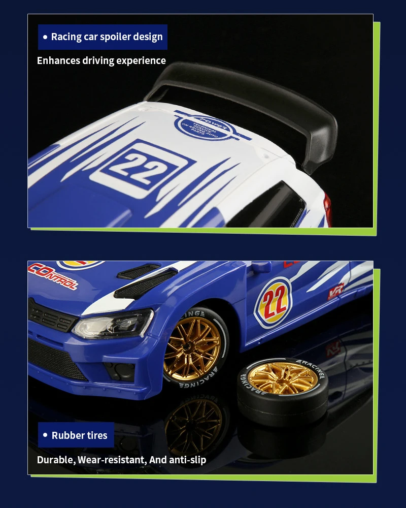 Coche de Carreras de Control Remoto a Escala 1:24 con Luces, Neumáticos Reemplazables, 2.4G, 4WD, Control Remoto Proporcional, Juguete de Rally para Niños, Regalo Q233