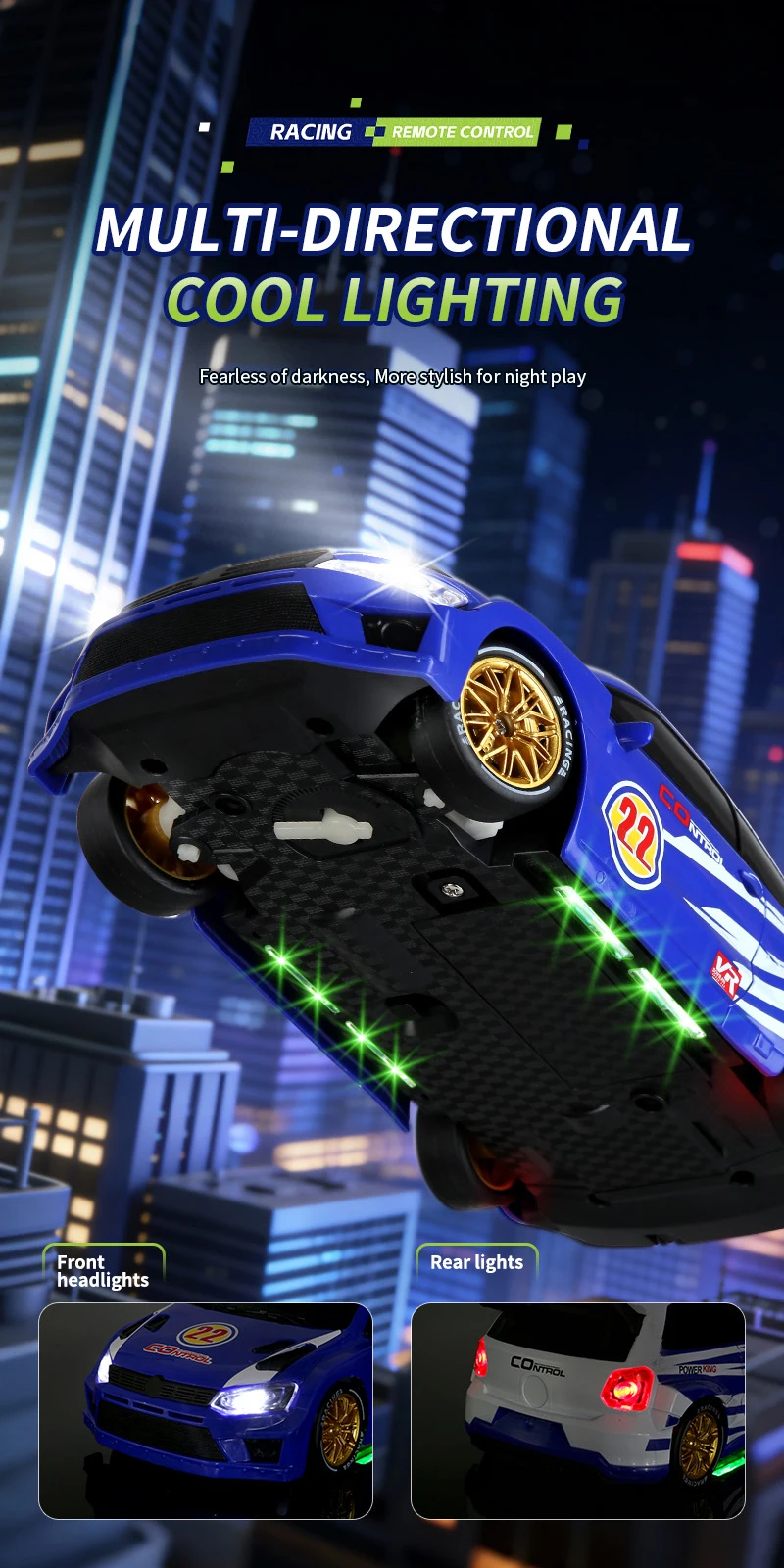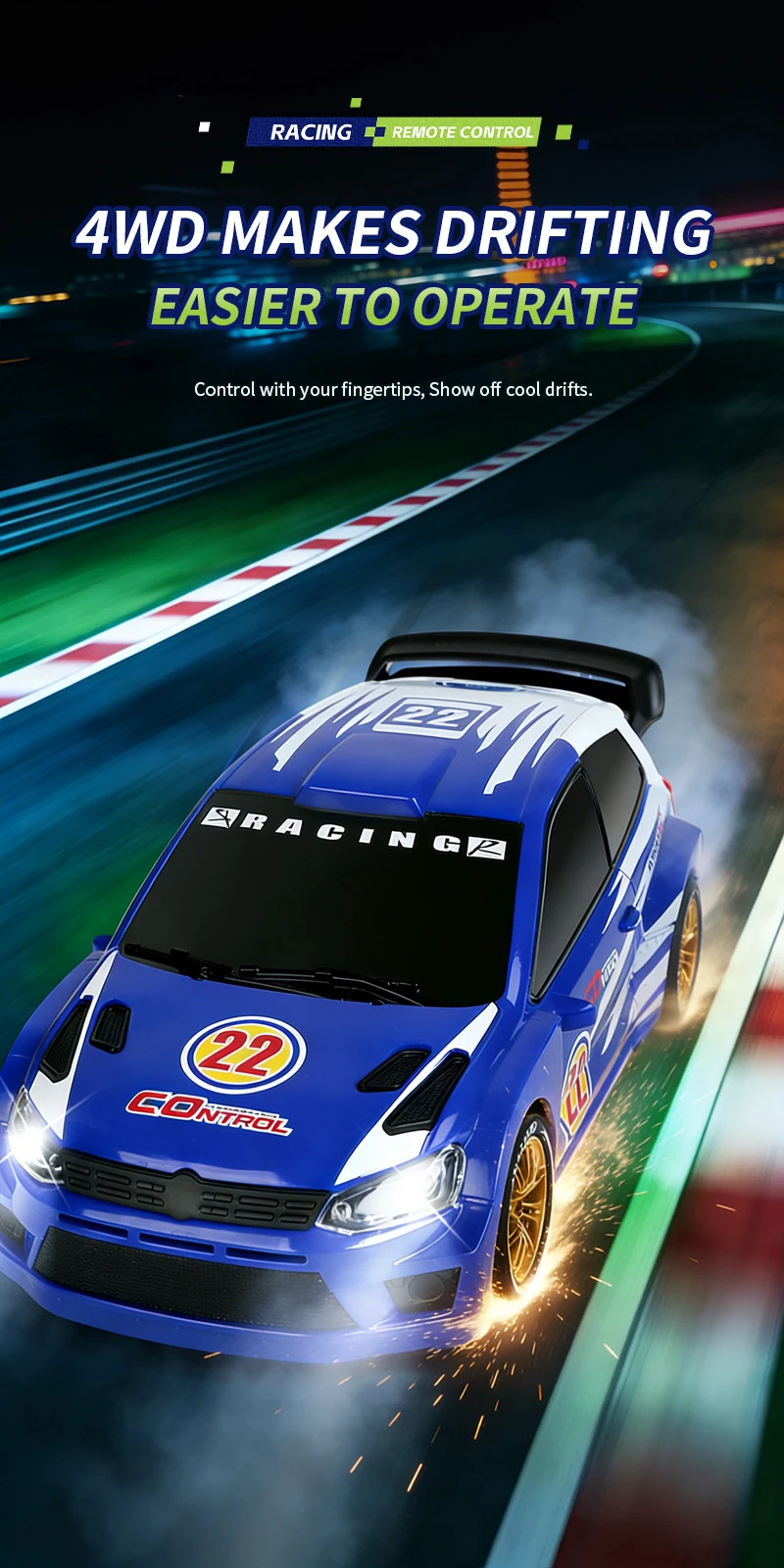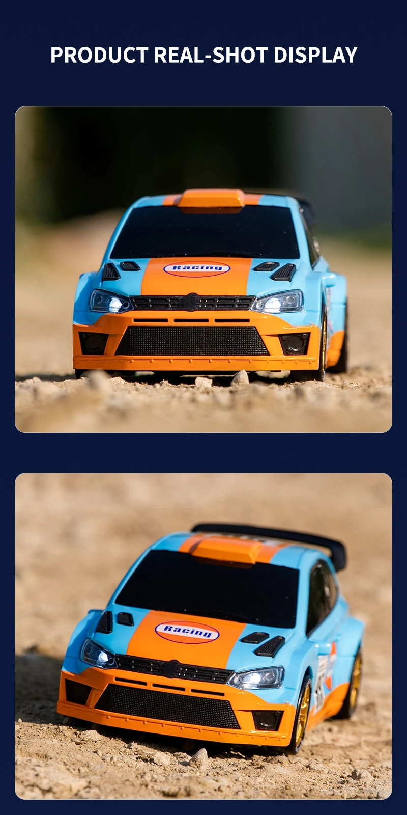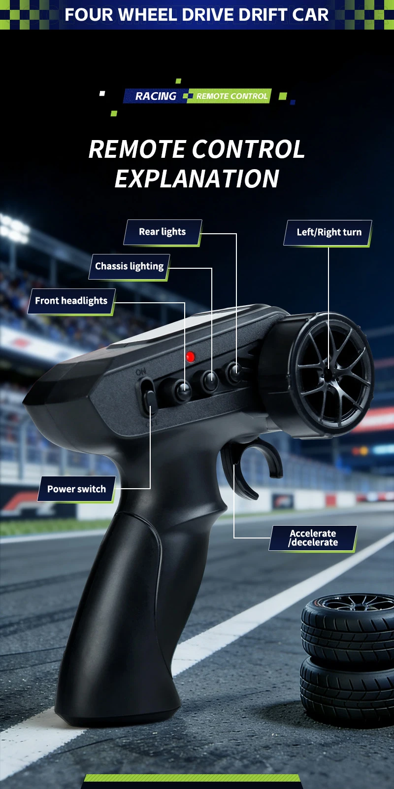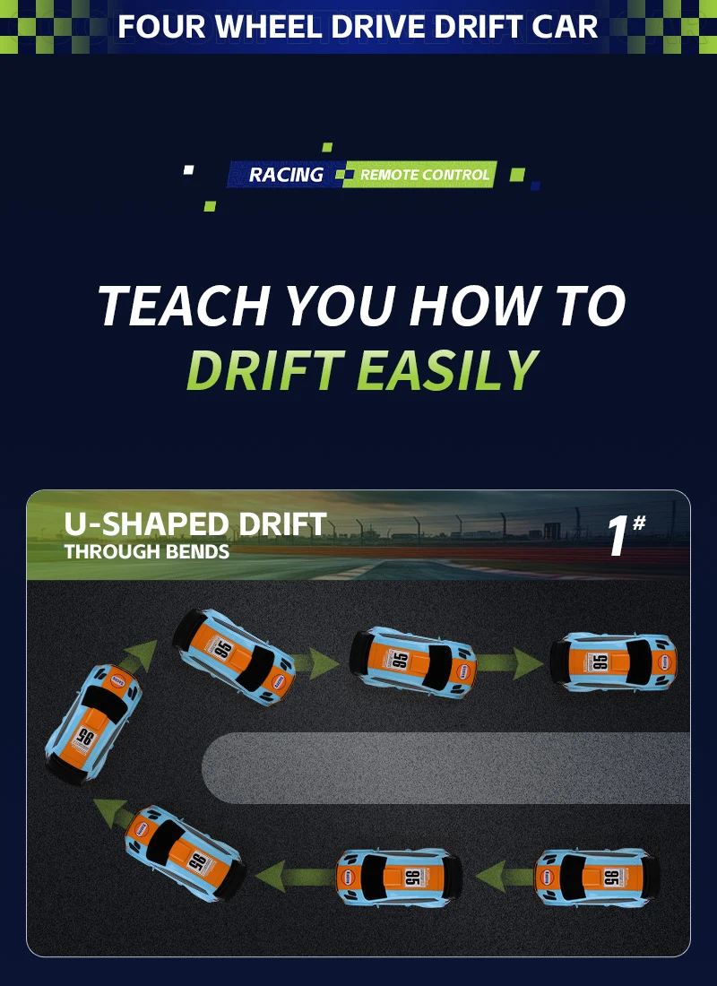 Coche de Carreras de Control Remoto a Escala 1:24 con Luces, Neumáticos Reemplazables, 2.4G, 4WD, Control Remoto Proporcional, Juguete de Rally para Niños, Regalo Q233