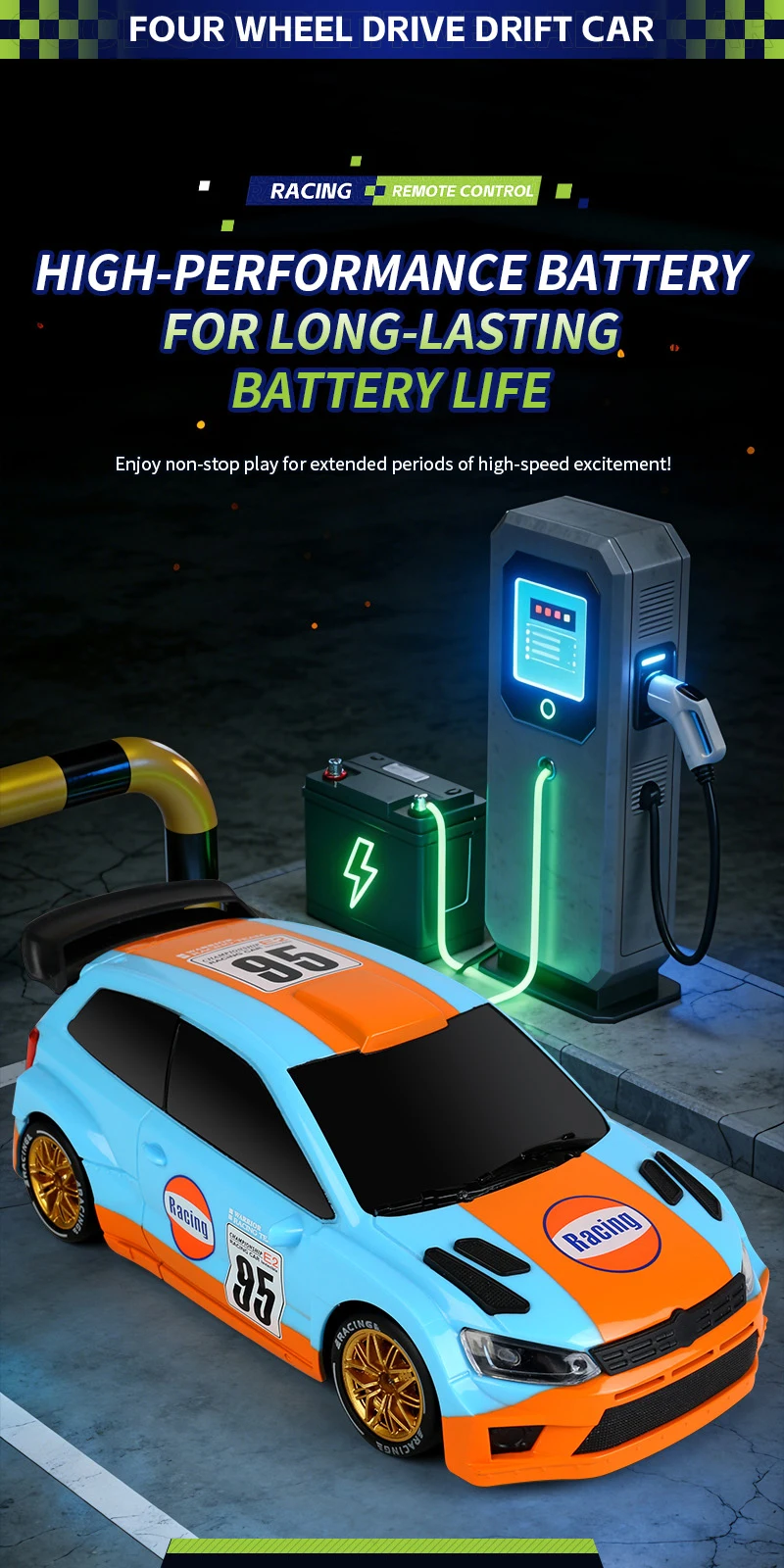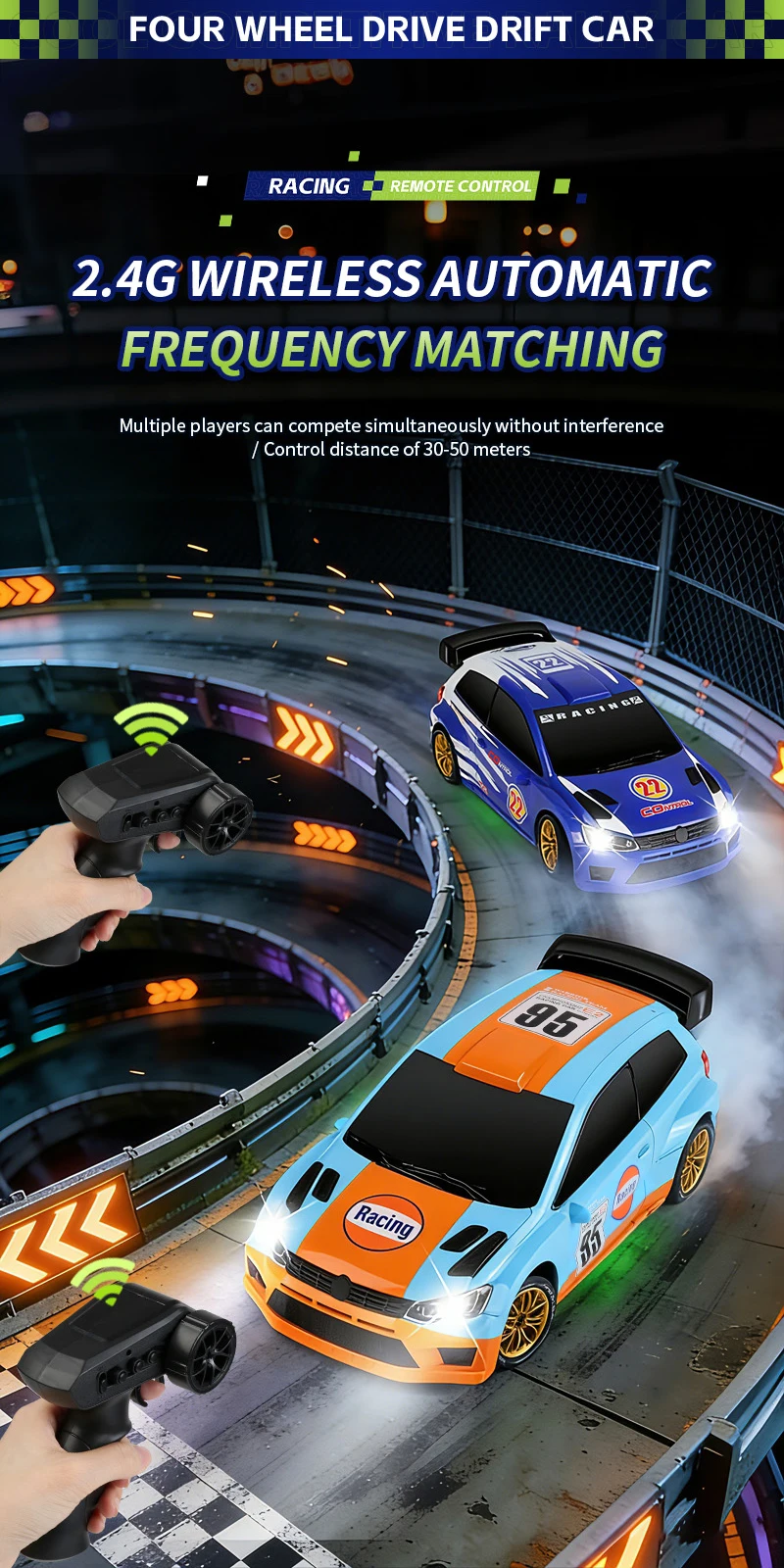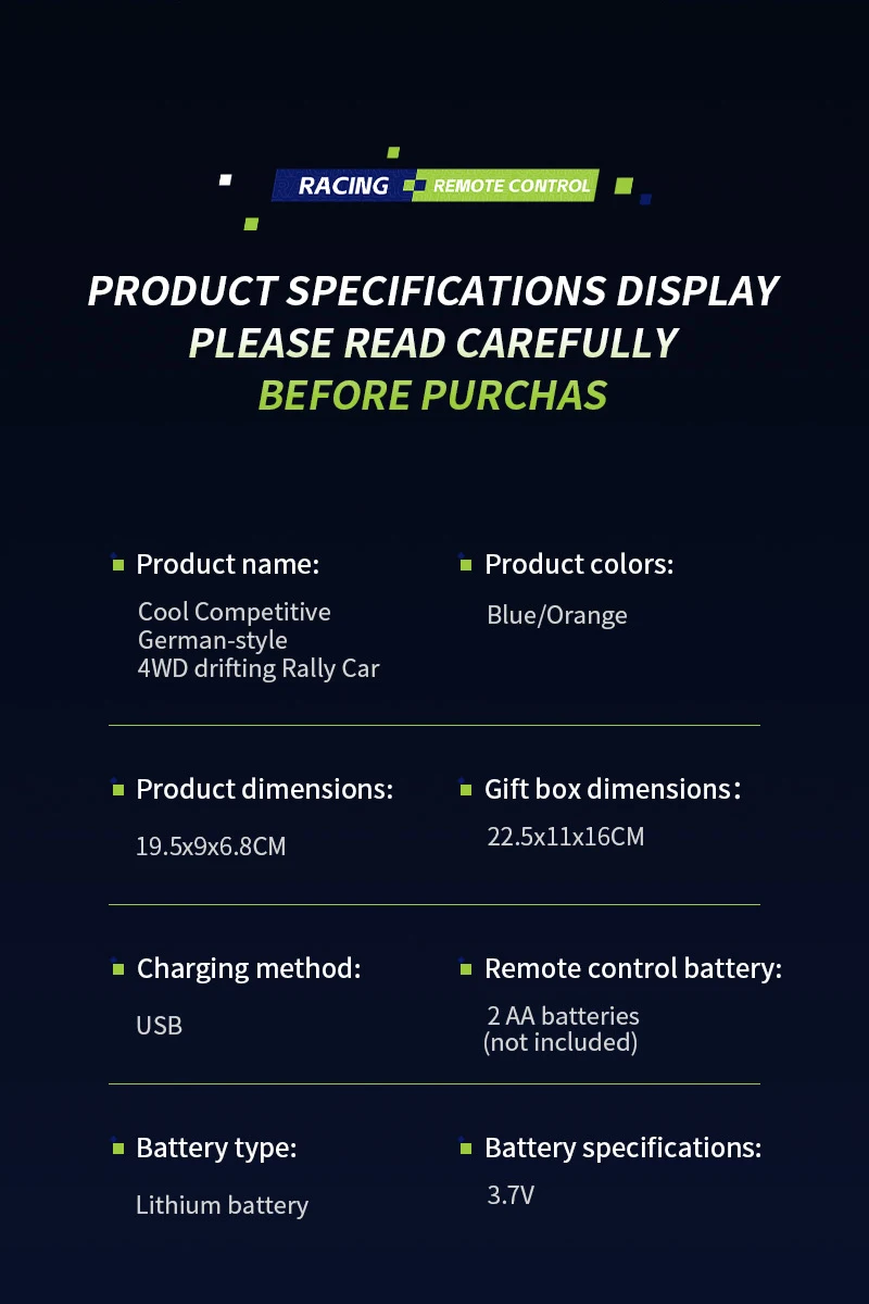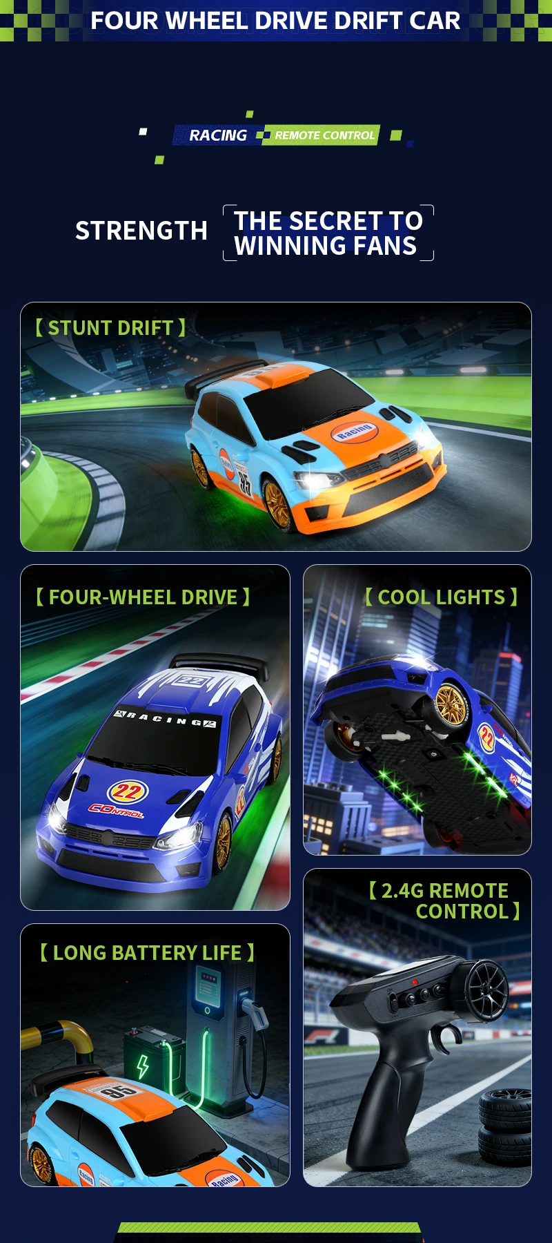 Coche de Carreras de Control Remoto a Escala 1:24 con Luces, Neumáticos Reemplazables, 2.4G, 4WD, Control Remoto Proporcional, Juguete de Rally para Niños, Regalo Q233
