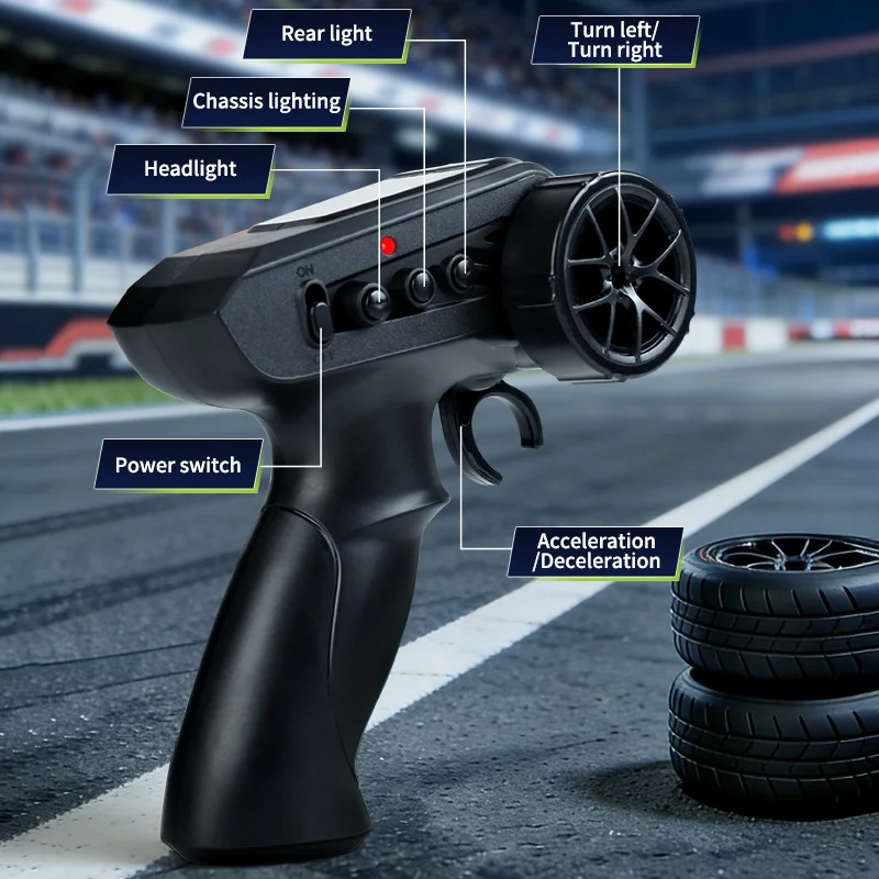 Coche de Carreras de Control Remoto a Escala 1:24 con Luces, Neumáticos Reemplazables, 2.4G, 4WD, Control Remoto Proporcional, Juguete de Rally para Niños, Regalo Q233