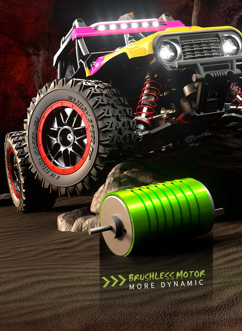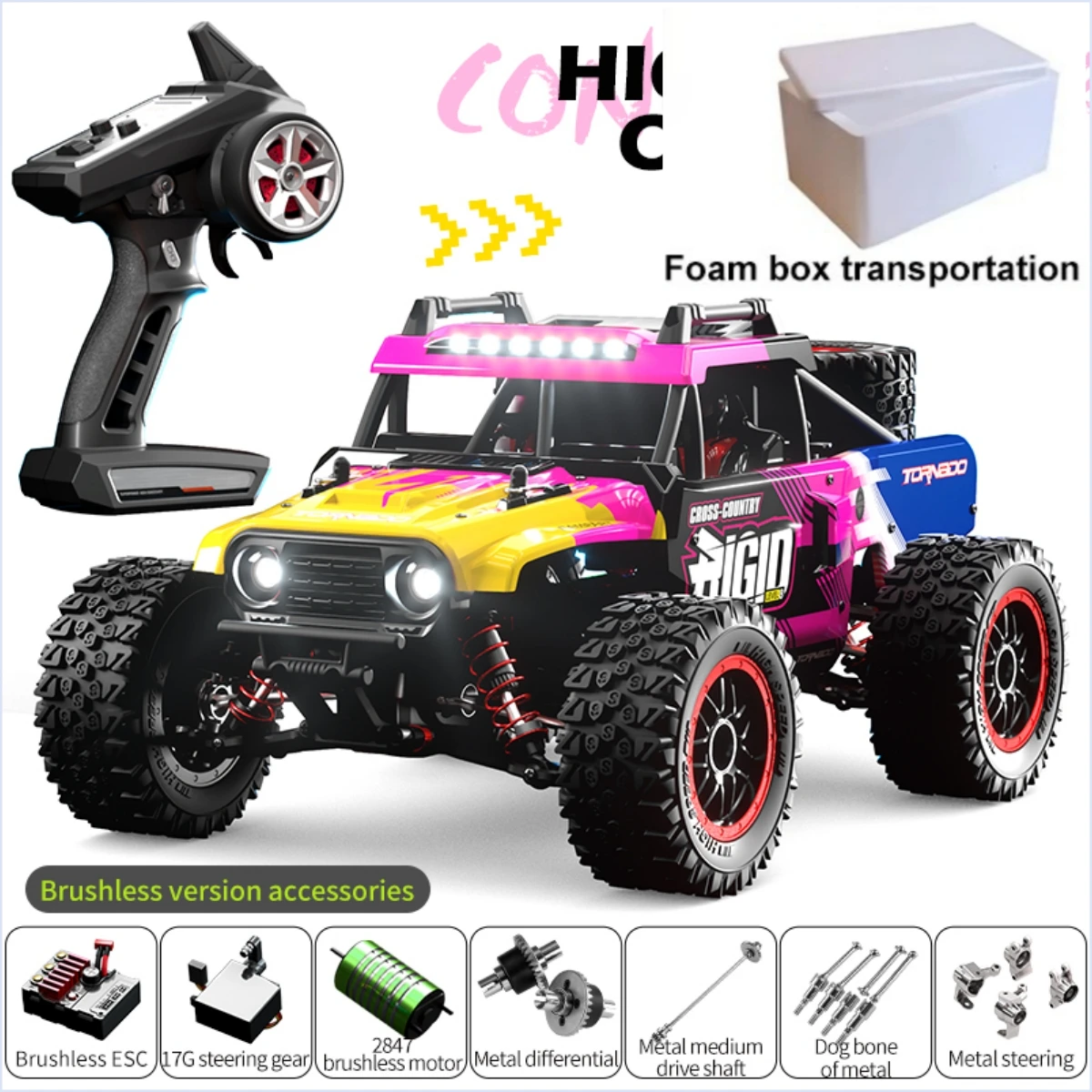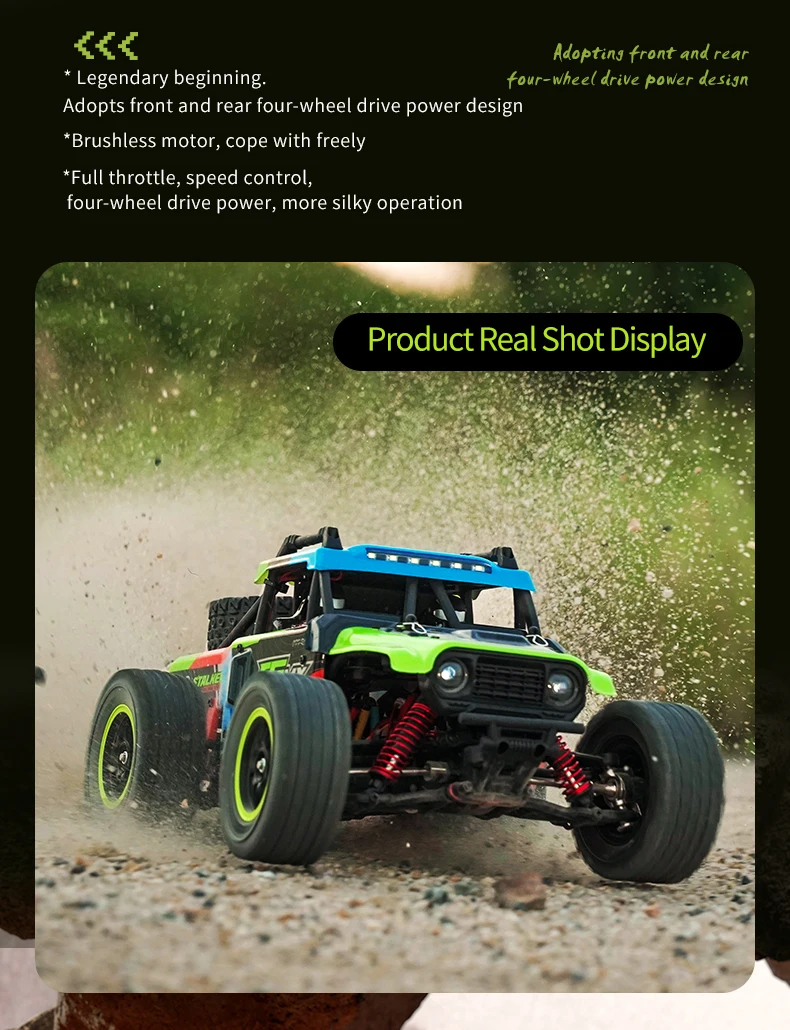 Coche RC de Alta Velocidad Todoterreno 4WD 2.4G con Control Remoto, Camioneta Eléctrica sin Escobillas con Luces LED, Coche RC de Hobby JJRC C8805