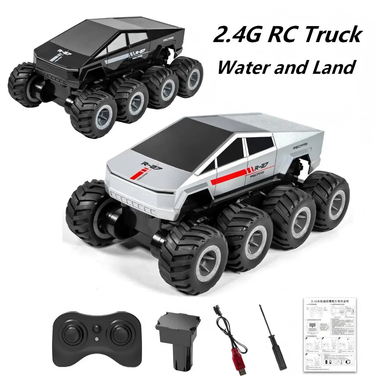 Coche teledirigido anfibio de 2,4G, 8WD, todo terreno, camión teledirigido de tierra y agua, vehículo acrobático, coche teledirigido impermeable, juguete para regalo para niños Q218