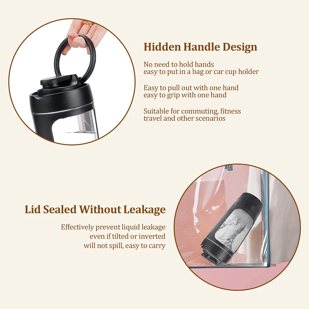 4. Diseño de manija oculta.No es necesario tomar las manos, es fácil de guardar en una bolsa o en un portavasos para el automóvil; fácil de sacar con una mano, fácil de agarrar con una mano; adecuado para desplazamientos, fitness, viajes y otros escenarios.