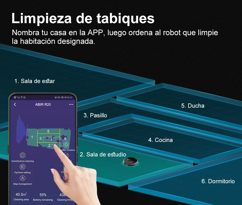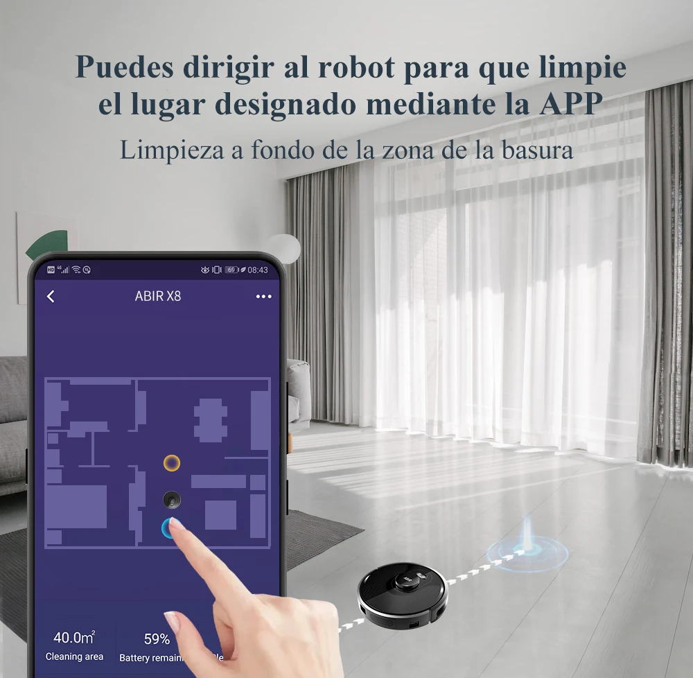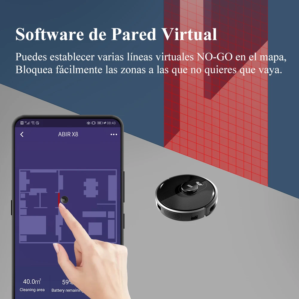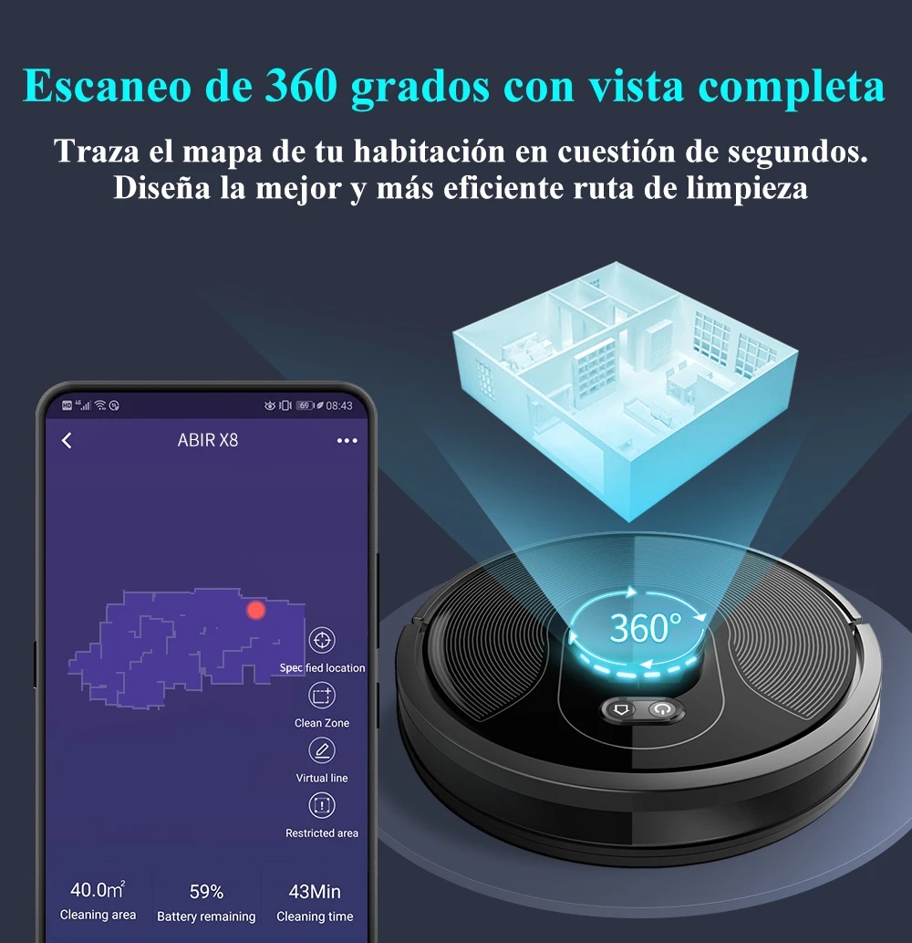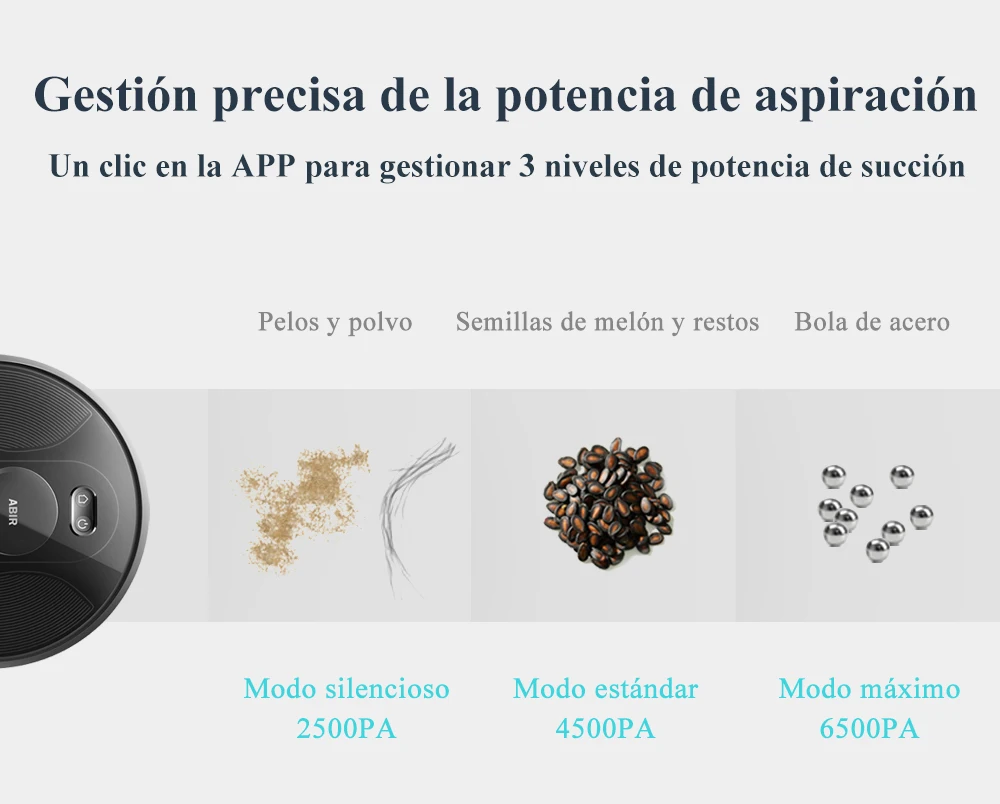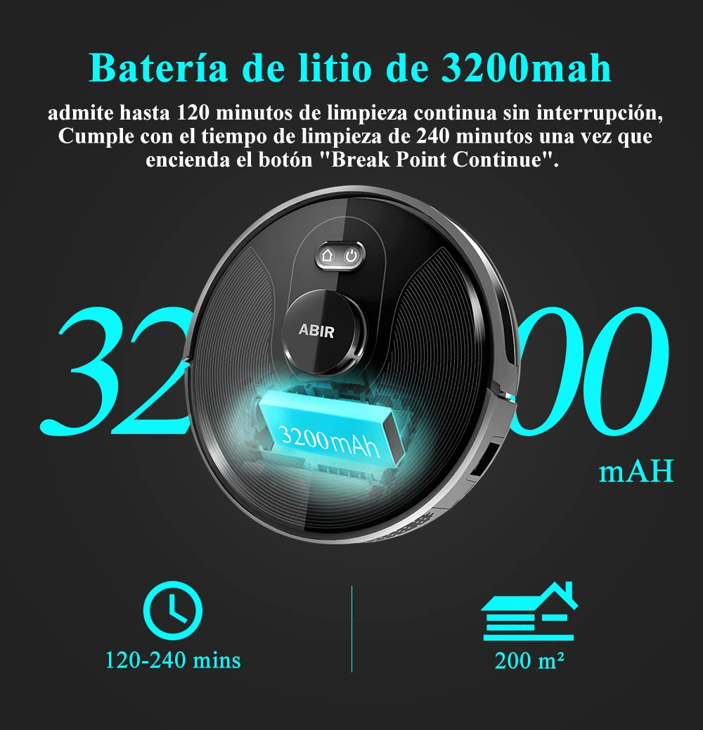 4 .El motor del ventilador actualizado hace una succión real de 6500PA con poco ruido. Usando una estrategia de combinación de reducción de ruido de 7 veces, ABIR X8 es mucho más silencioso que otras marcas cuando está en modo máximo