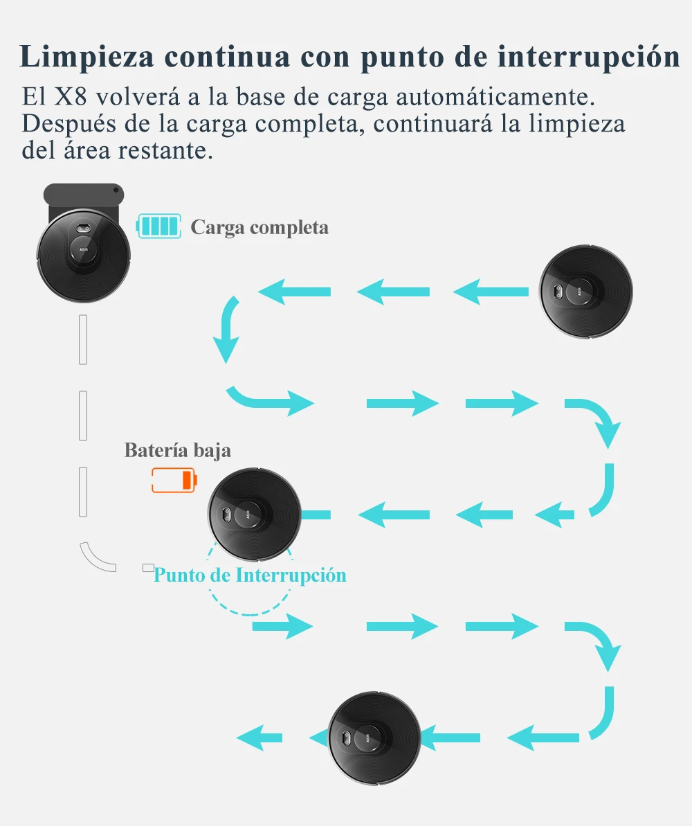2. Programa de algoritmo único para X8, primero determine el límite de la habitación, luego descubra la ruta de limpieza más eficiente. Otras marcas solo funcionan en AI Normal Path. Cobertura baja que X8.
