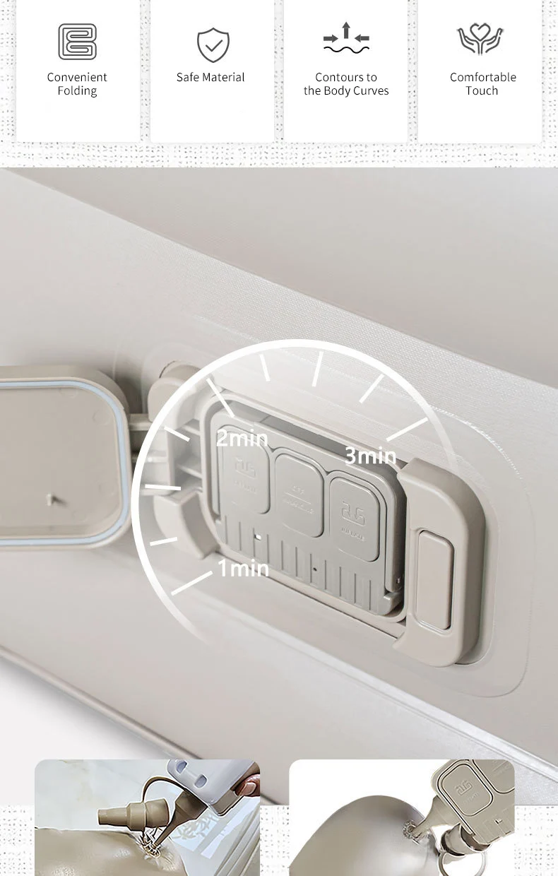 1. Dispositivo de bomba de aire incorporado, se infla/desfla en 1-3 minutos.