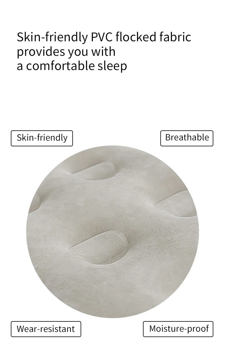1. Después de recibir la cama inflable, infle y déjela reposar durante 8 a 12 horas para asegurarse de que no haya fugas antes de usarla.No infle demasiado el colchón de aire, ya que el sobreinflado puede provocar que la correa se rompa o que la superficie de la cama se abulte, dificultando su reparación.