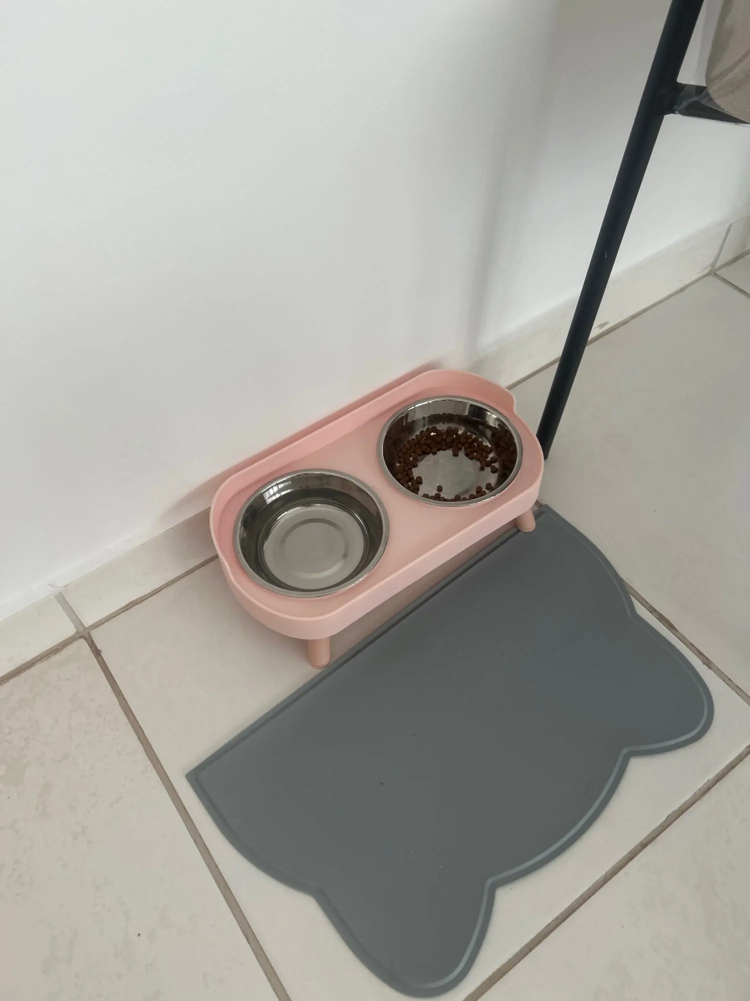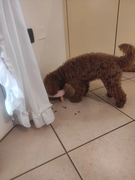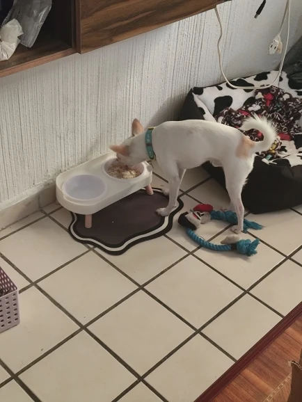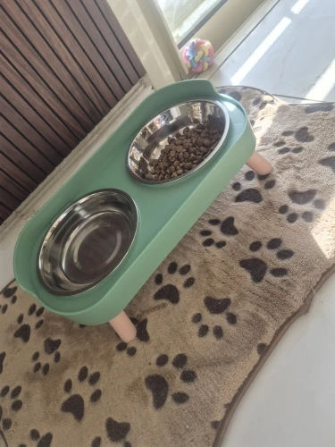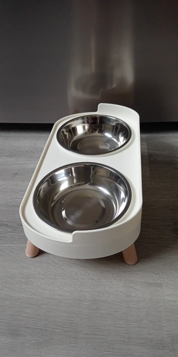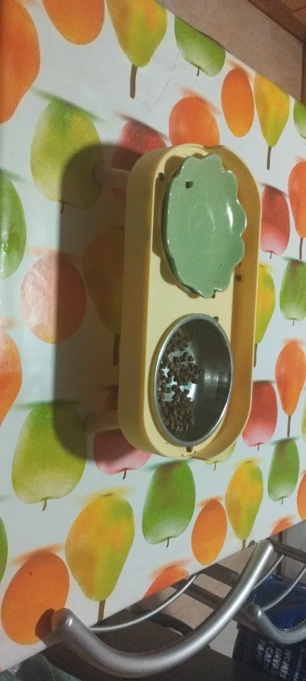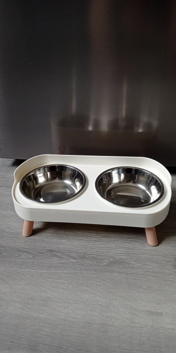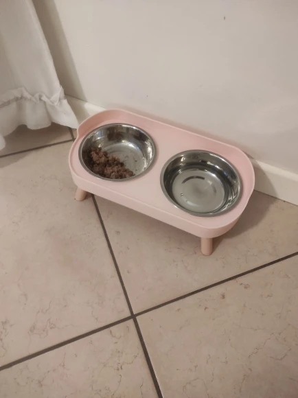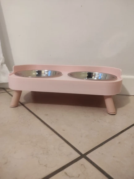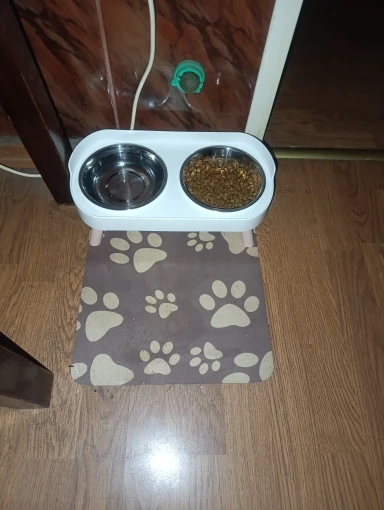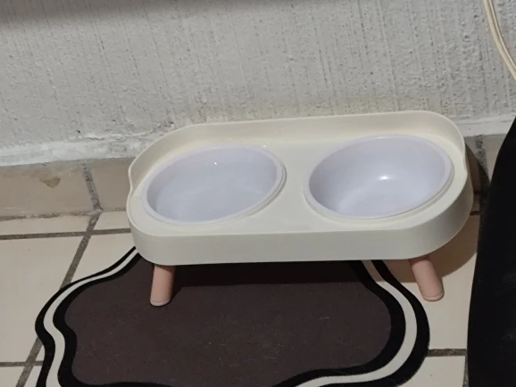 súper bonito y cómodo para el y un poco más limpio ya que no está sobre el piso el platito, así puedo quitar y poner para servirle su comidita