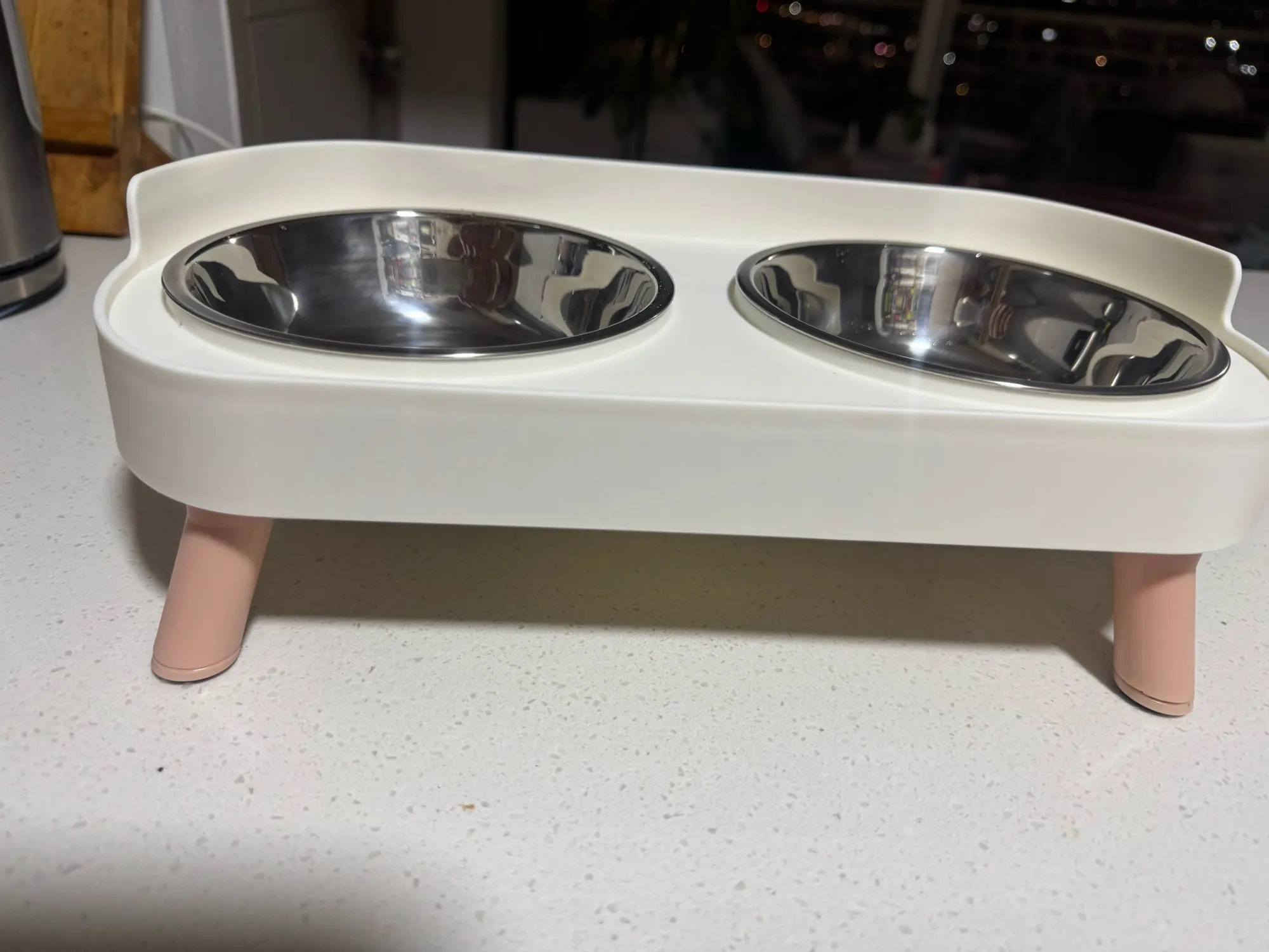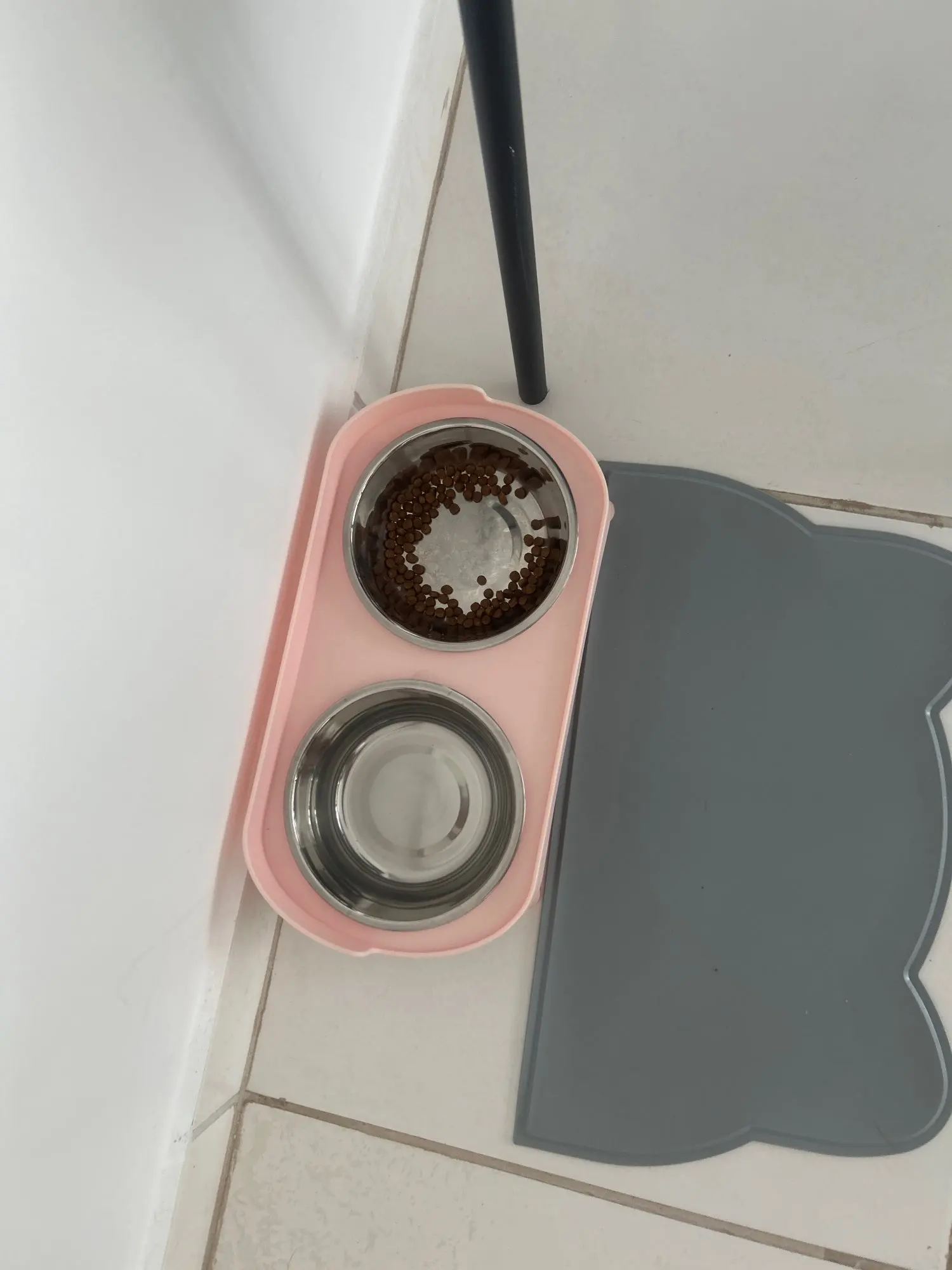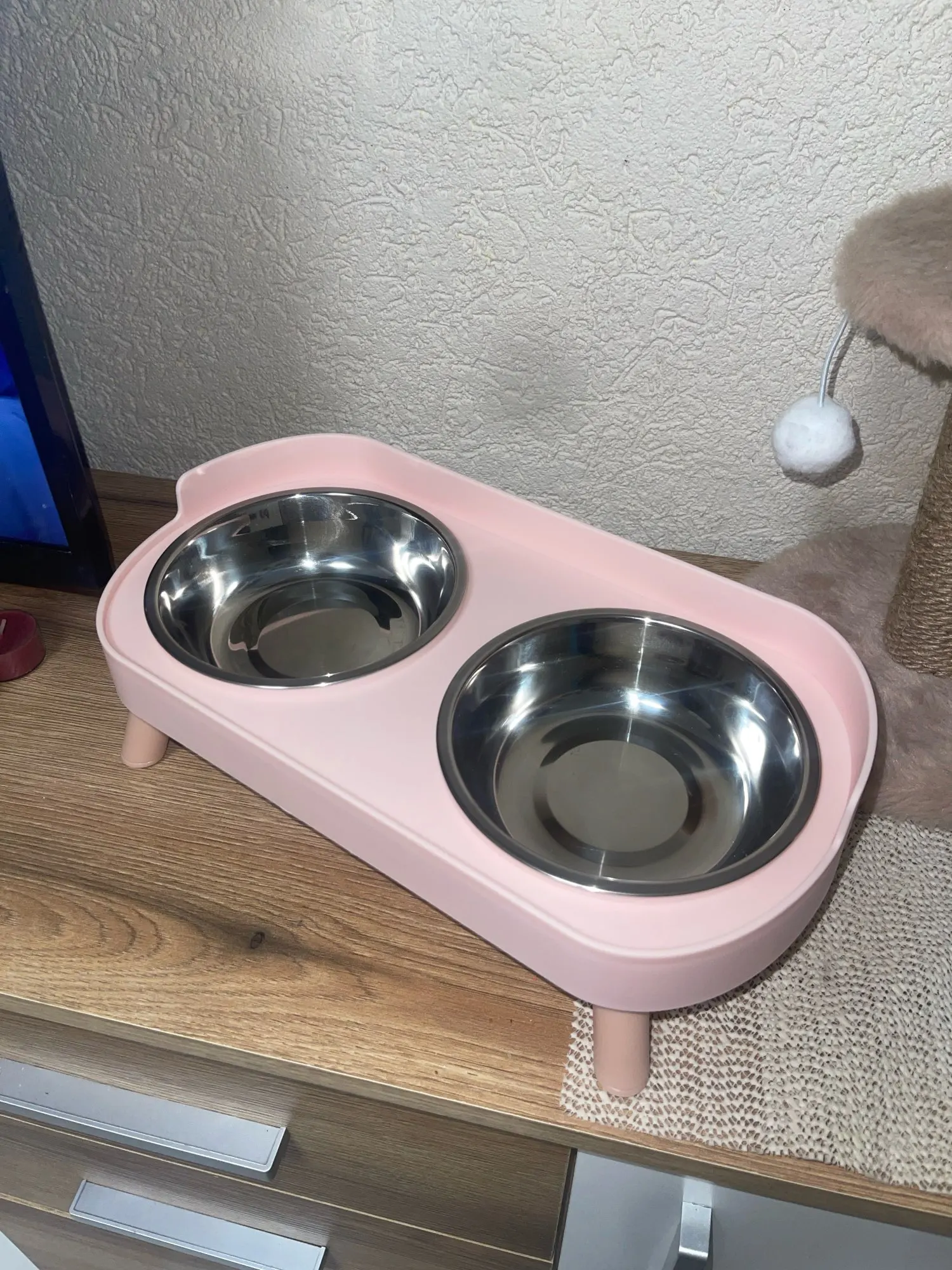súper bonito y cómodo para el y un poco más limpio ya que no está sobre el piso el platito, así puedo quitar y poner para servirle su comidita
