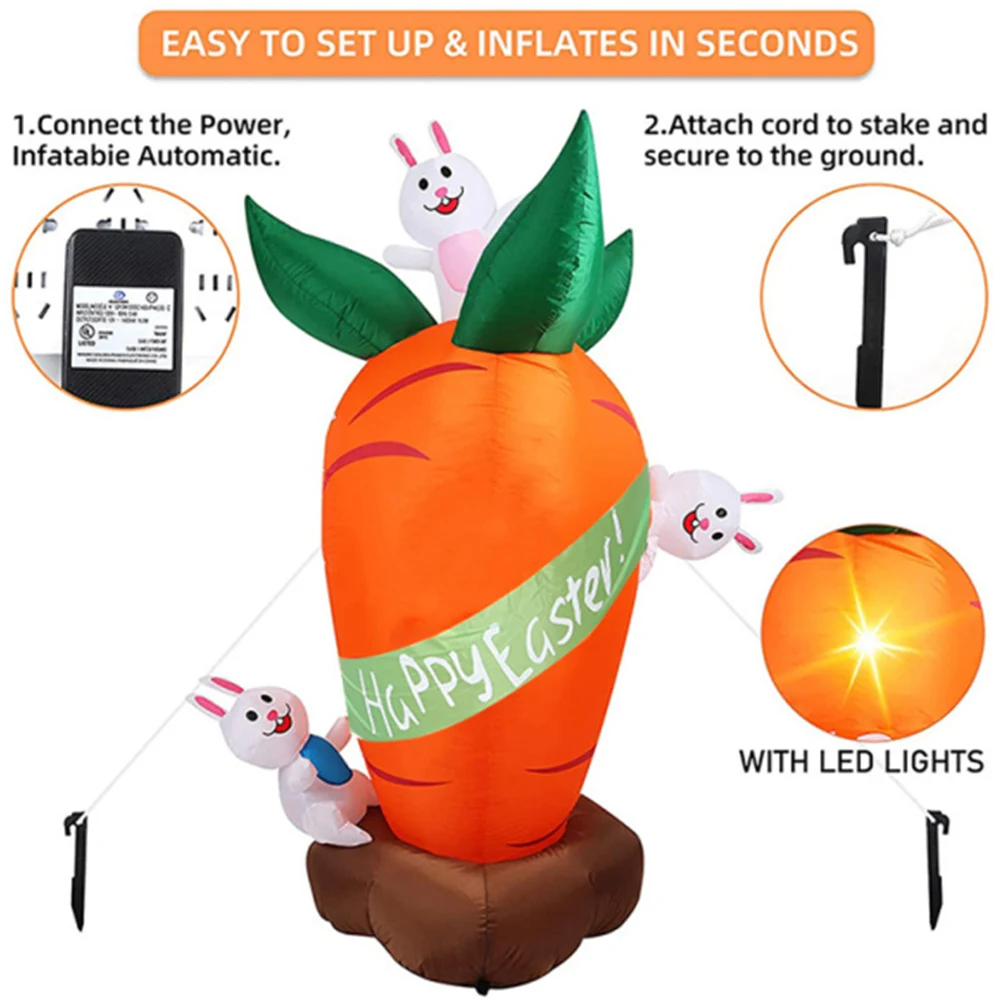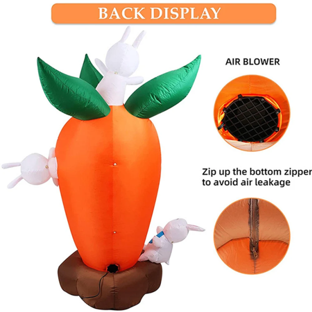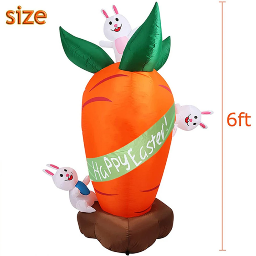 Conejo de zanahoria inflable de 1,8 M, decoración de Pascua, conejo de Pascua que sopla al aire libre, luces LED integradas, adorno de fiesta de Pascua