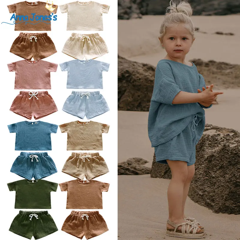 Conjuntos cortos de algodón 100% para niños de verano 2025, trajes de manga corta transpirables para niños pequeños, niñas, conjuntos de ropa para niños de 1 a 8 años