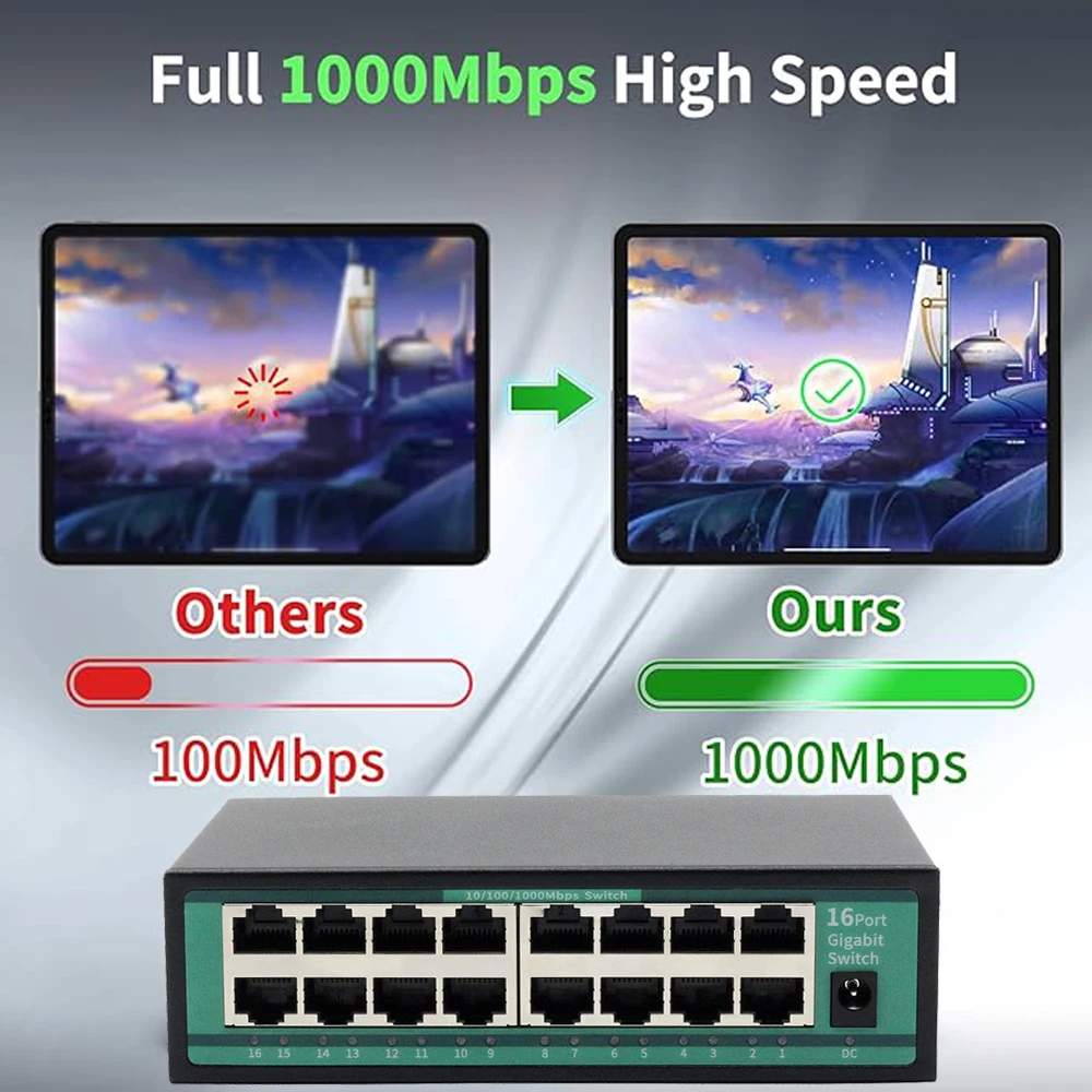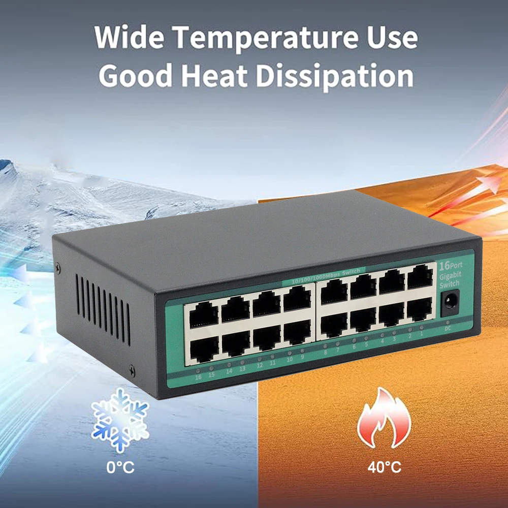 l16 puertos RJ45 adaptables de 10/100/1000M, que admiten giro automático de puerto (Auto MDI/MDIX) El puerto UTP admite una función de negociación automática, ajustando automáticamente el modo de transmisión y la velocidad de transmisión