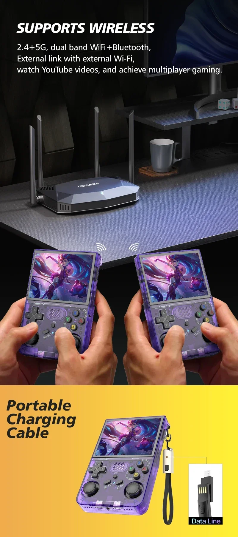 Estoy gratamente sorprendido, finalmente con Wi-Fi integrado. Amplia colección de juegos que incluye PSX y PSP. Versión con TARJETA SD de 256 GB, desafortunadamente un producto sin nombre que a veces debería ser reemplazado por un artículo de marca. Desafortunadamente, se utilizaron principalmente tarjetas SD de NoName. Yo (y probablemente muchos otros) nos gustaría asumir el costo adicional por una tarjeta de marca y también preferimos productos de este tipo. De lo contrario, un dispositivo de primera, dos ranuras para tarjetas SD, 2 puertos USB-C (DC y OTG). Además, se incluye un cable de conexión en bucle.
