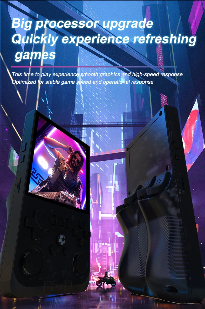 3) Chip RK3326: Con el chip profesional RK3326, ejecuta juegos 2D y algunos 3D sin problemas, ofreciendo un rendimiento de primera categoría.