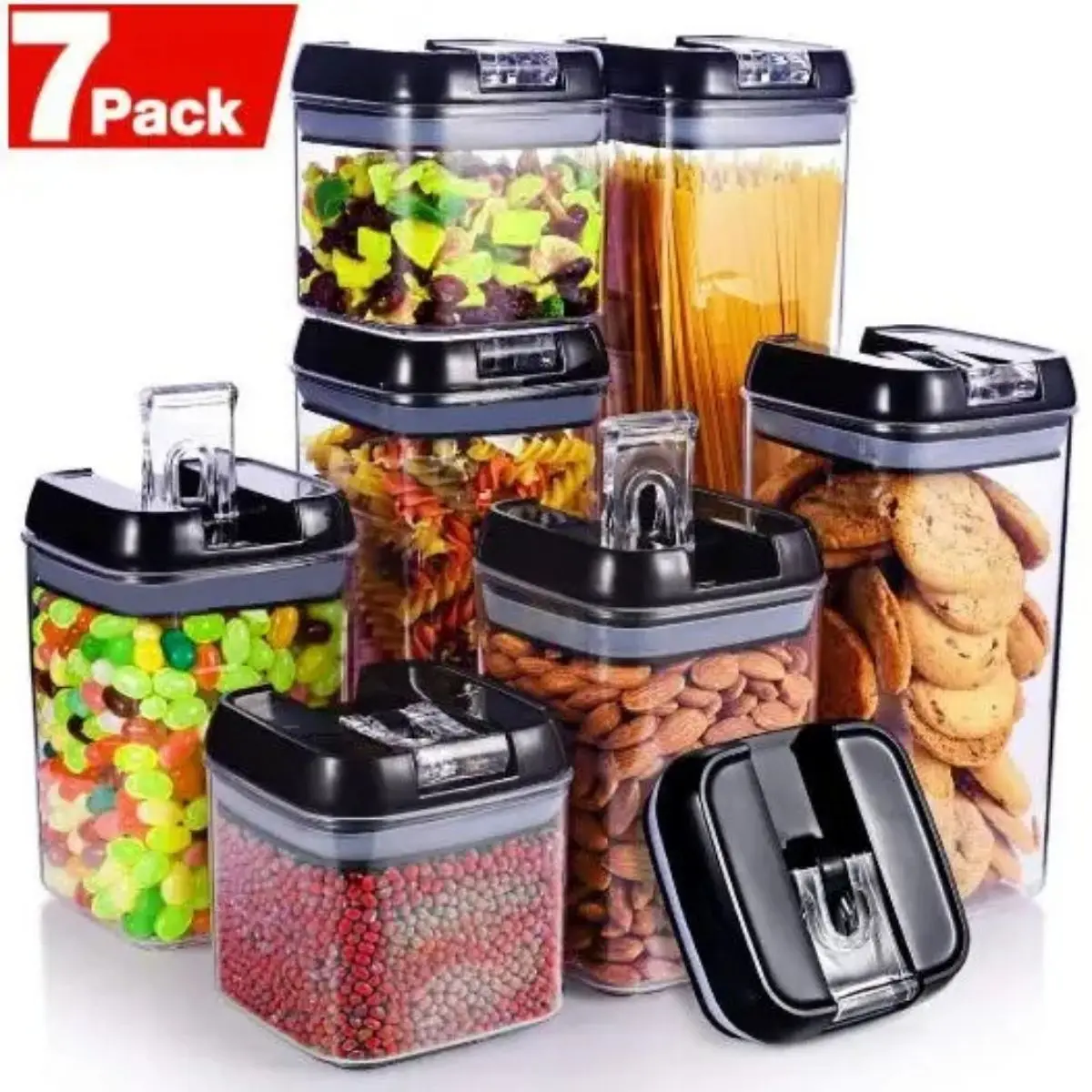 Multiusos:Son perfectos para almacenar cereales, pasta, arroz, frijoles, harina, azúcar, café, snacks, alimentos para mascotas y mucho más.