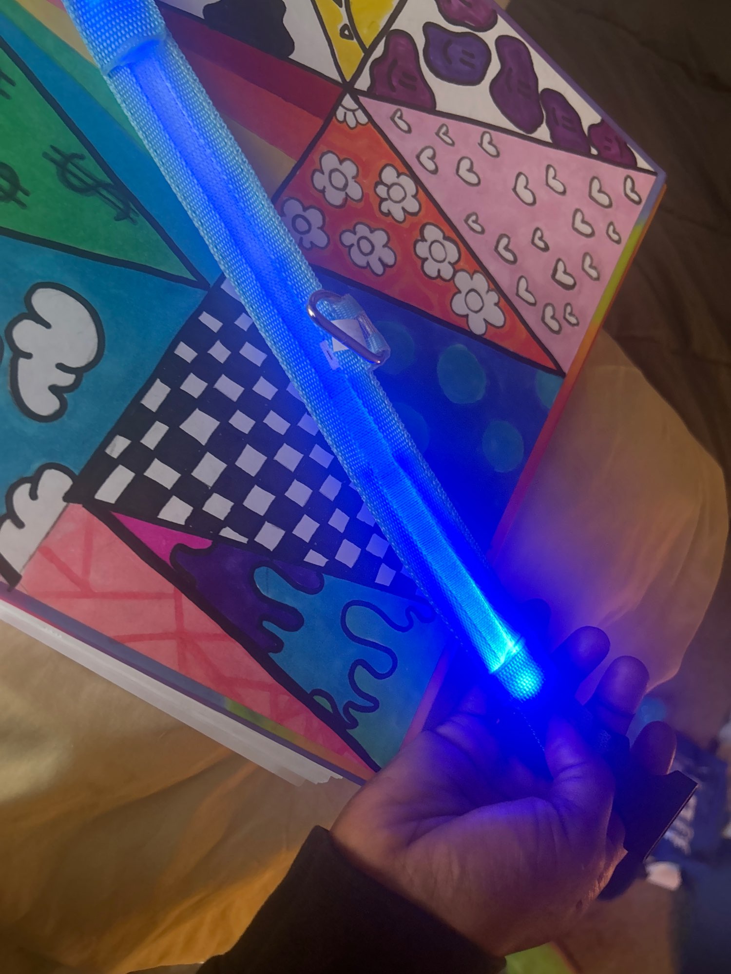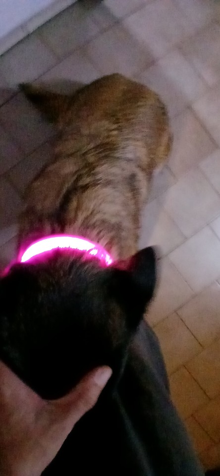 Tiene tres configuraciones, puedes hacerlo sólido, puedes hacerlo en blanco muy rápido y luego puedes hacer que parpadee moderadamente rápido, muy bien, color construido, bonitas costuras, todo se ve hermoso por encima, feliz con esta compra, oferta absoluta, color maravilloso y será Haz que mi pequeño Frosty sea visto cuando lo dejo pasar por la noche para ir al baño y cuando lo vea amar esta compra 5/5 ⭐ ⭐ ⭐ ⭐ ⭐ no te decepcionarás con esta compra Me prometo llegar en menos de 10 días pedí un extra pequeño para mi perro, él es Chihuahua y weenie mix and color 15 bien un poco grande con él, pero eso está bien porque no lo uso para caminar, usa arneses debido a lo poco de cuello, así que es más solo verlo por la noche y permanece perfectamente puesto solo como referencia de tamaño si alguien era amable que le pregunte porque no me midí el cuello de mis perro antes de comprarlo.