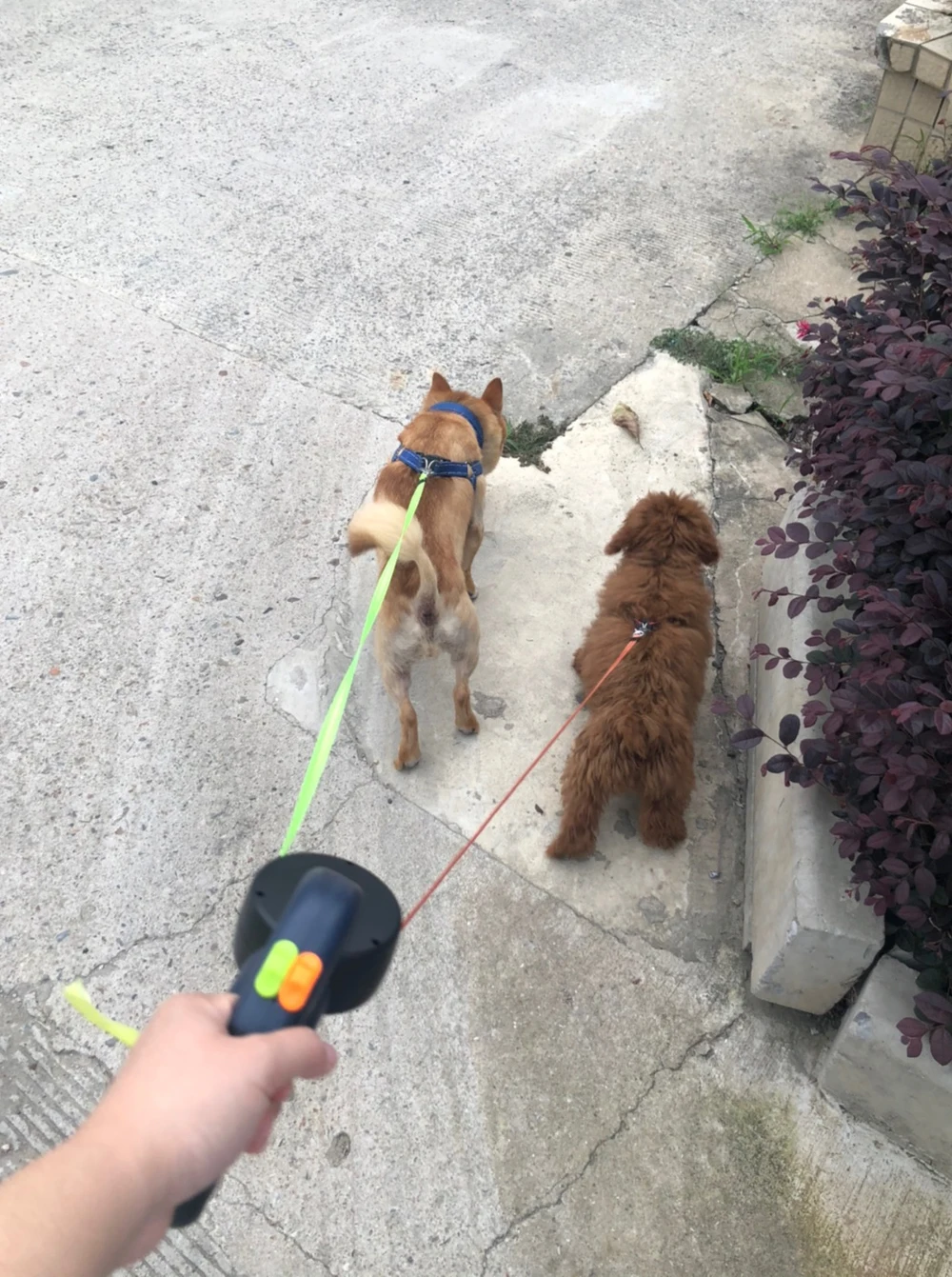 ◆ 2. La tecnología de desenredo automático de 360 grados le permite pasear cómodamente a dos perros al mismo tiempo, mientras mantiene el control individual de cada uno