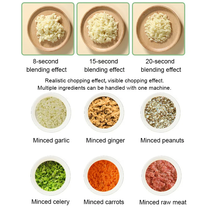 La picadora de verduras portátil recargable es increíblemente cómoda y eficiente. Su diseño compacto facilita su almacenamiento y la función recargable elimina la molestia de reemplazar constantemente la batería. Las hojas son afiladas, picar las verduras de forma rápida y uniforme con el mínimo esfuerzo. Es perfecto para preparar comidas rápidamente, ahorrando tiempo y energía. La limpieza es muy sencilla ya que las piezas son fáciles de desmontar y lavar. En general, ¡un gran dispositivo para cualquier cocina!