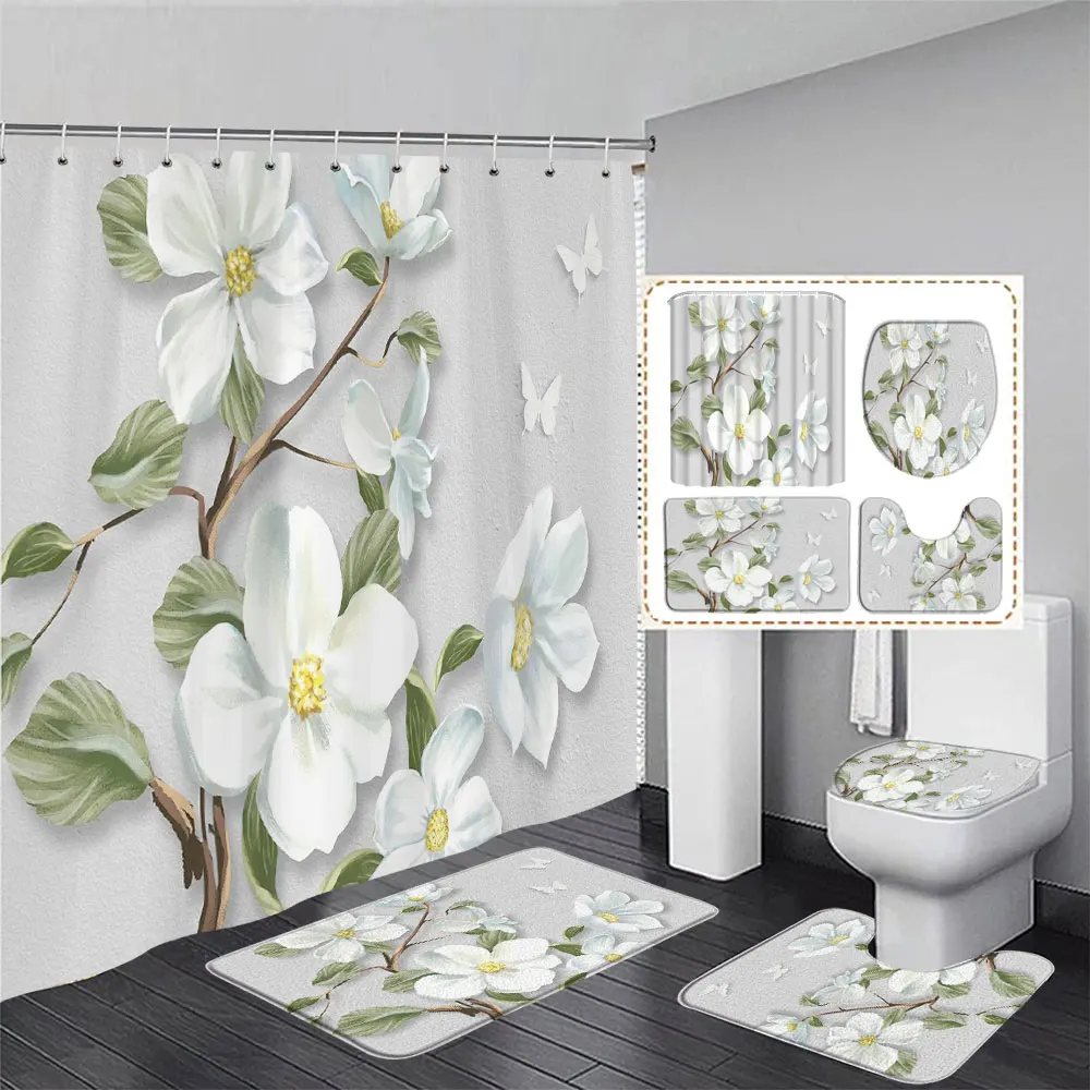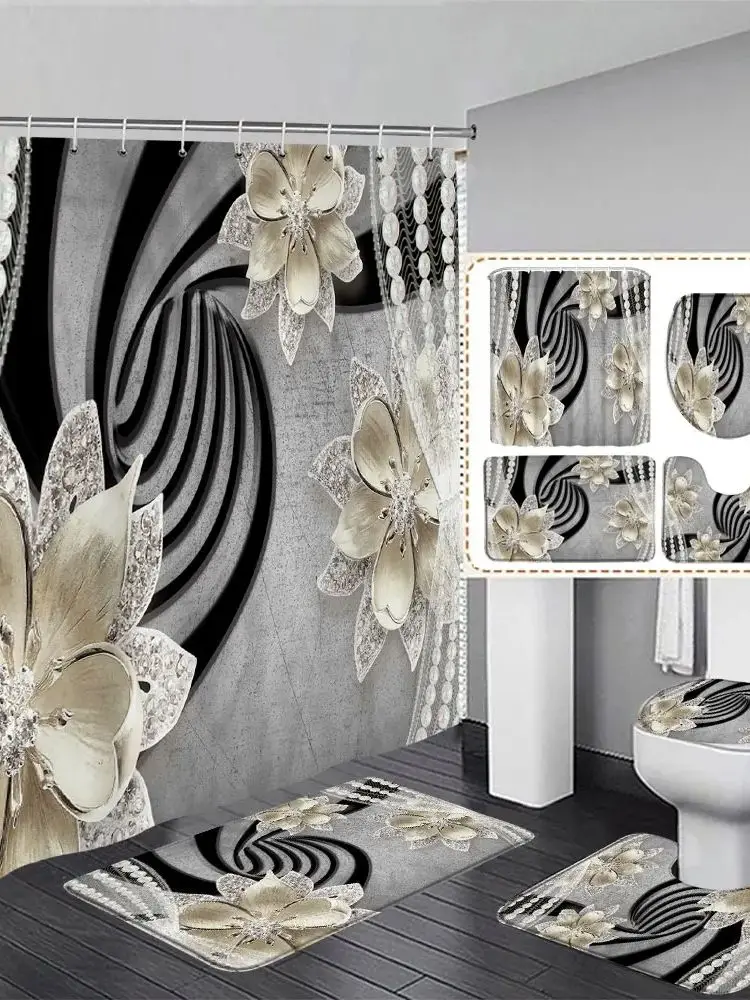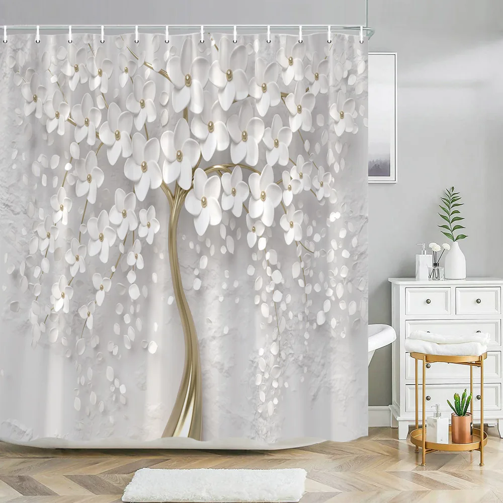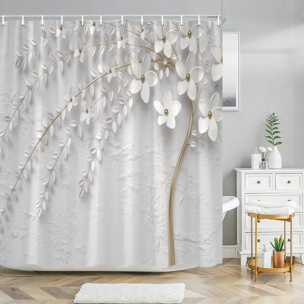 Material de la Cortina de ducha: tela de poliéster impermeable