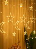 La cortina de luces de estrellas utiliza 12 luces de estrellas de 138 LED, de 3,5 M de largo, incluidas 6 estrellas grandes y 6 estrellas pequeñas. El diámetro de la estrella grande es de 20 cm y el diámetro de la estrella pequeña es de 10 cm. Las luces se pueden interconectar.