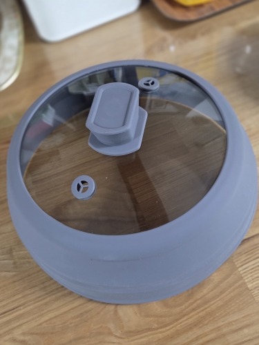 Buena calidad. Es un poco pesado porque es de vidrio, pero parece duradero. Cubre la comida. Creo que sería bueno para uso múltiple en la cocina. Estoy pensando en comprar más para reemplazar completamente las cubiertas en casa. Además, varios controles son esenciales. Es imprescindible.