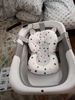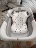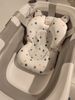 La alfombra de baño suspendida está diseñada para imitar el útero, y es suave y envuelta para proteger el desarrollo de la columna vertebral del bebé.