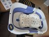 Recibido muy rápidamente, antes de la estimación. Pequeña bañera para las vacaciones, fácil de montar y llevar. Tamaño pequeño, para mi bebé de un año, se sienta sin problema, sin embargo, alargar no es posible, ya que es para las vacaciones no hay problema que es lo que quería (mi hijo es de 73cm). Un recién nacido aguantará fácilmente. Lo único es que el cierre del sensor de temperatura al nivel de las baterías es imposible de poner