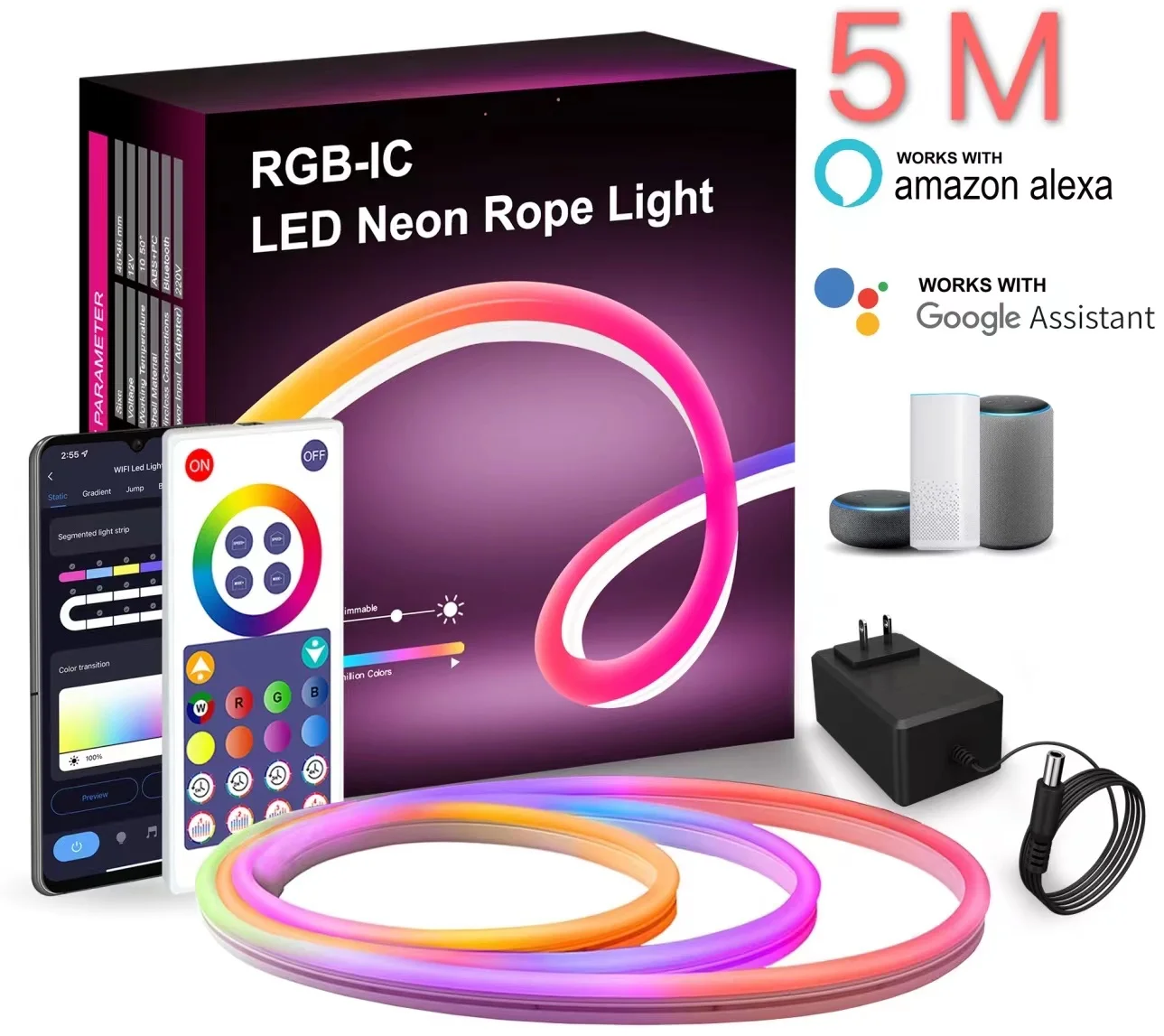 * Control de voz inteligente, funciona perfectamente con Alexa, asistente de Google, con comandos de voz simples a través de Alexa, asistente de Google, puede administrar sus luces de neón fácilmente.