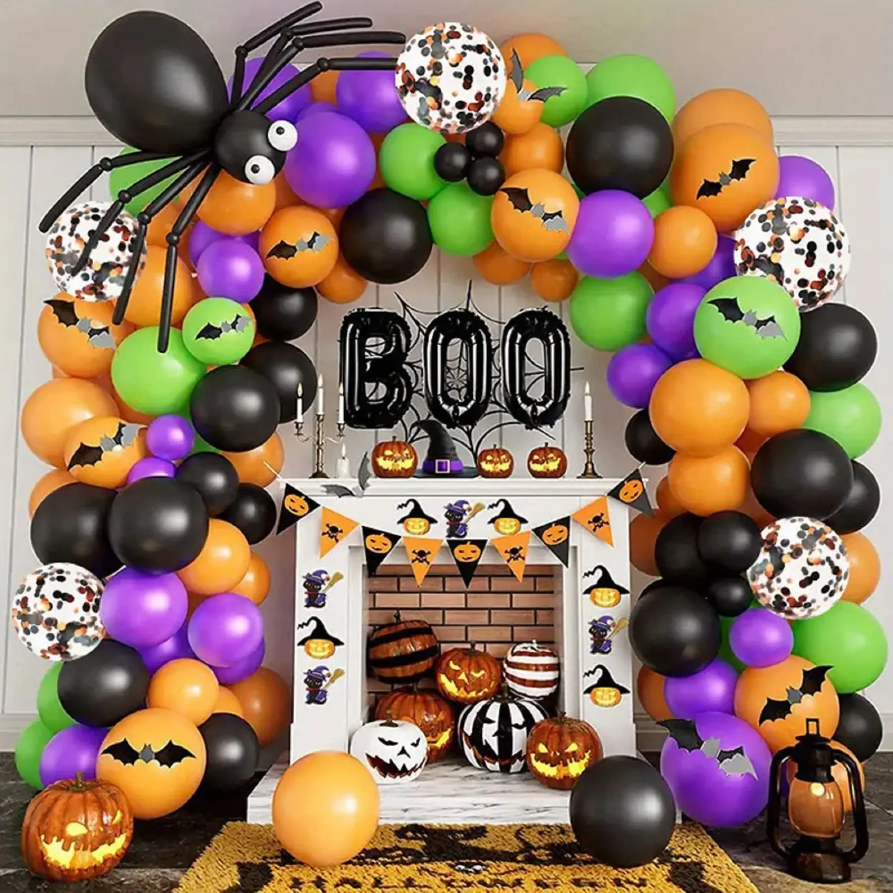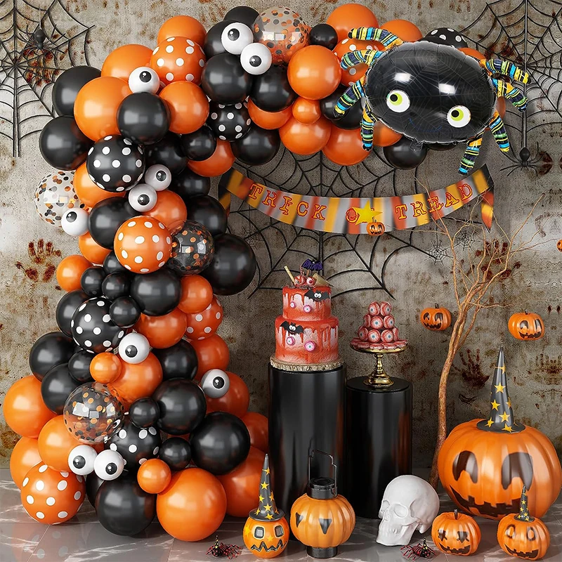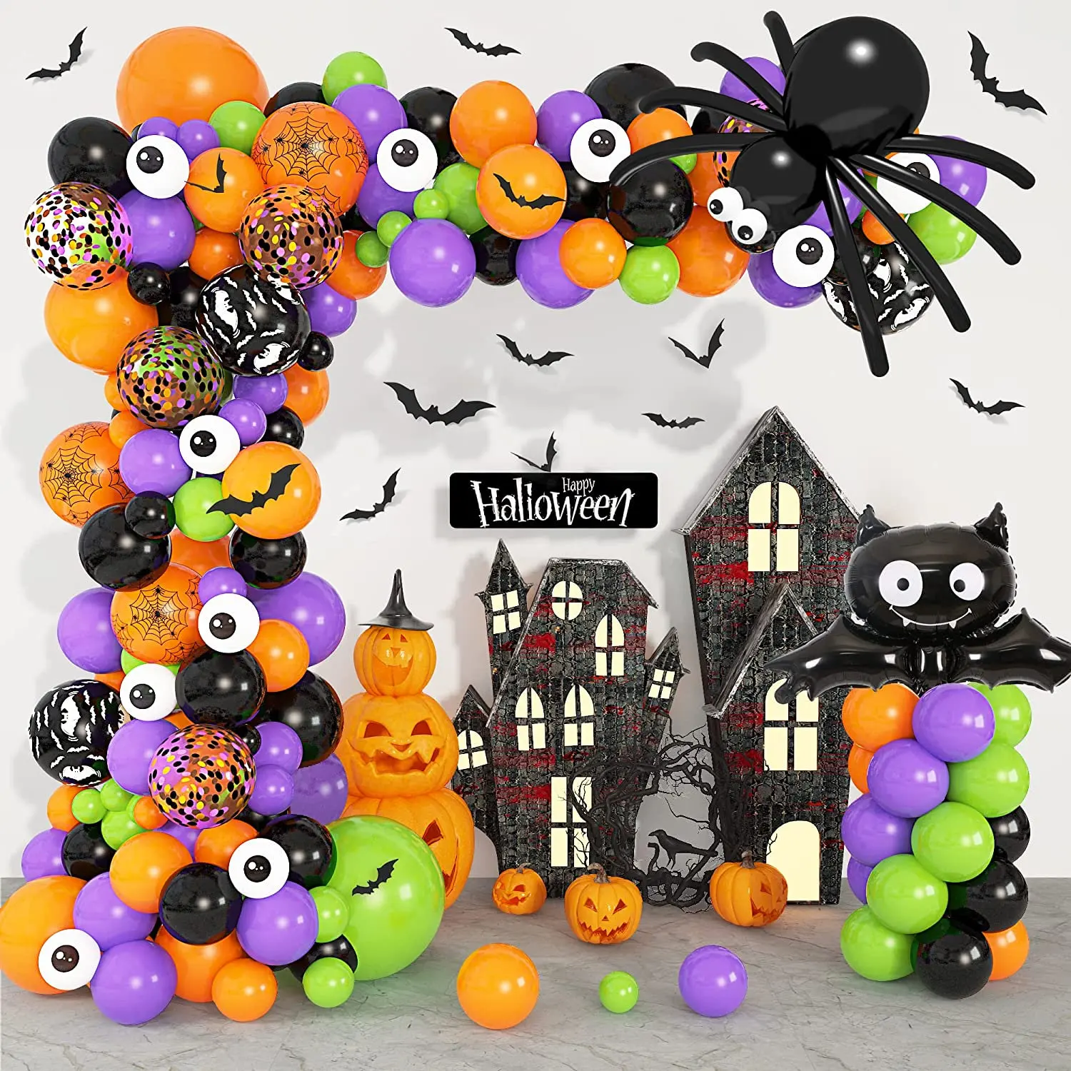 Kit de arco de guirnalda de globos con decoración de murciélago de Halloween, lámina de murciélago de araña 3D, globo de látex y naranja, suministros para fiestas Globos