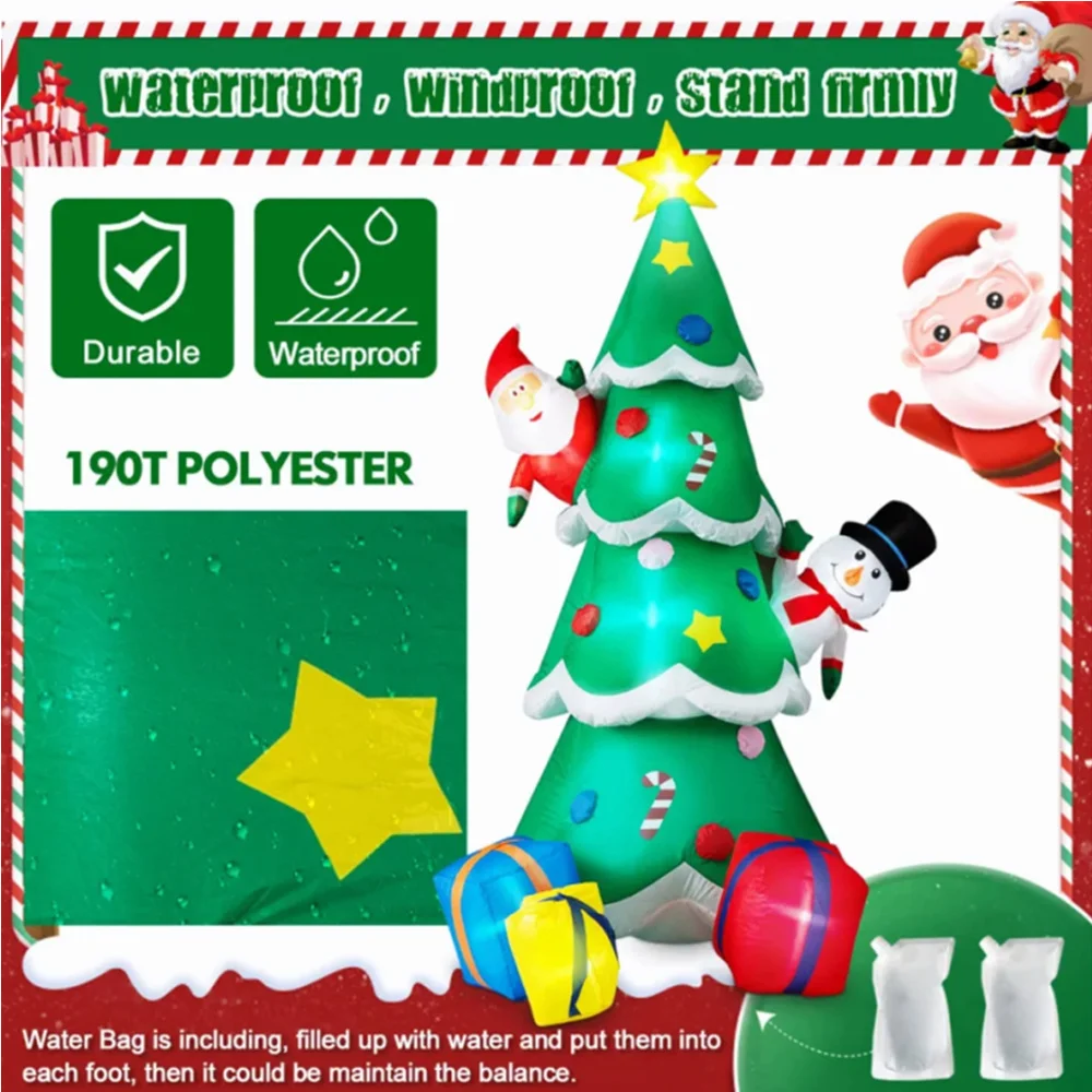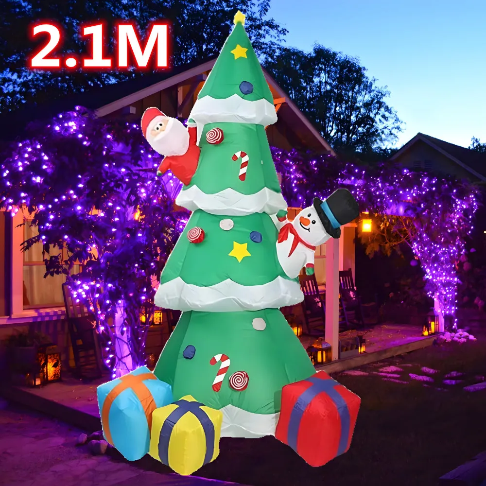 Este árbol inflable navideño de 2,1 m de largo aporta una sensación más fuerte de ambiente navideño y lo convierte en decoraciones navideñas inflables más grandes y atractivas que existen.El mejor regalo para niños.